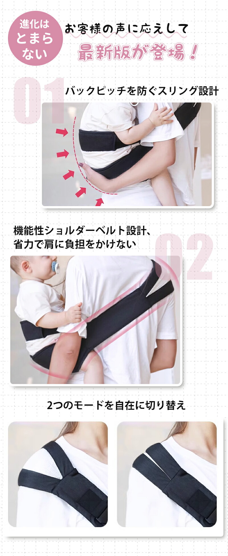 スリング 抱っこ 抱っこ紐 コンパクト ベビー 抱っこひも ベビースリング 抱っこひも 通販 ブラック グレー ブルー ピンク 従来版 最新版