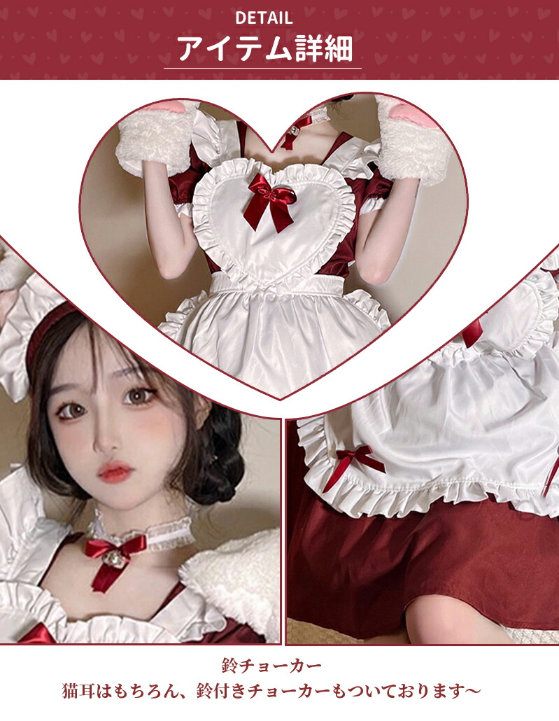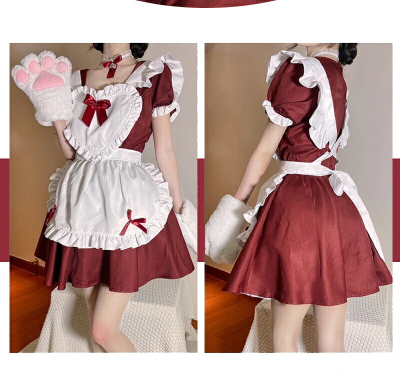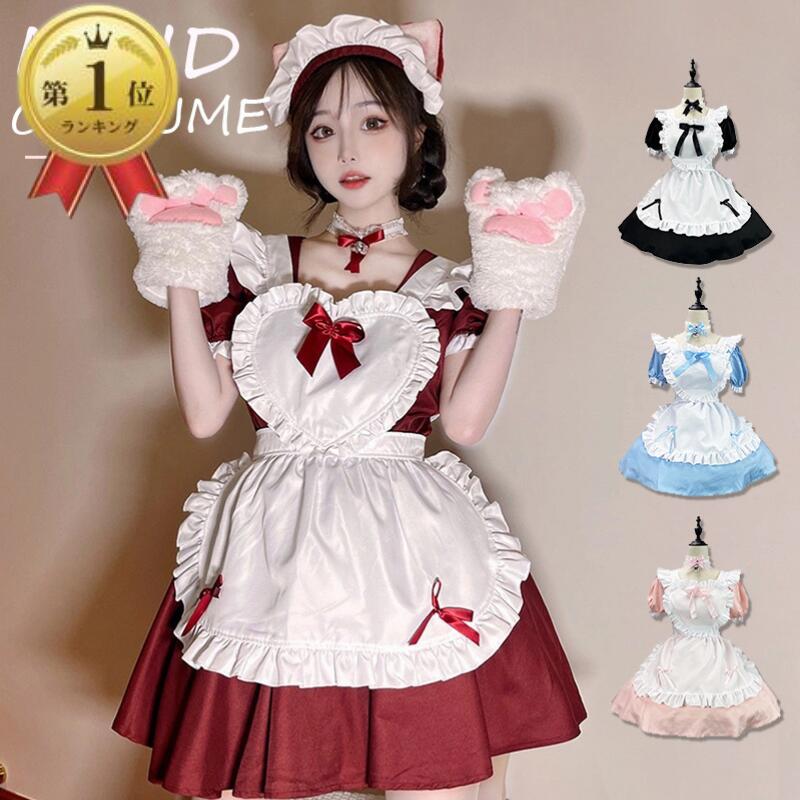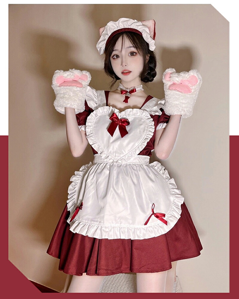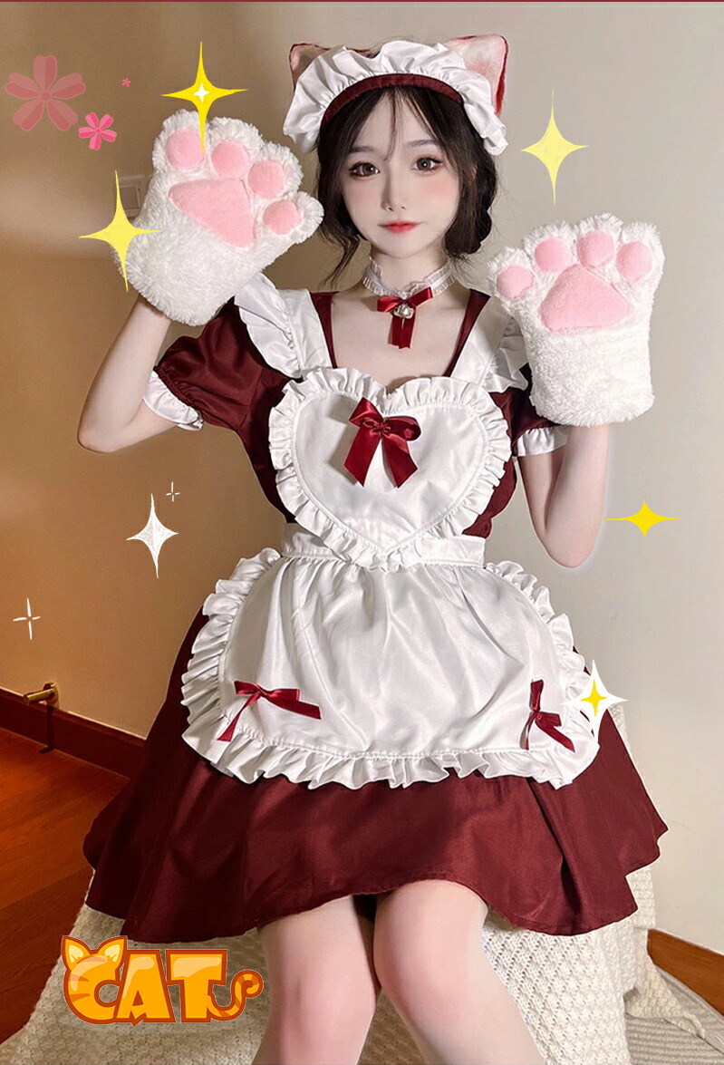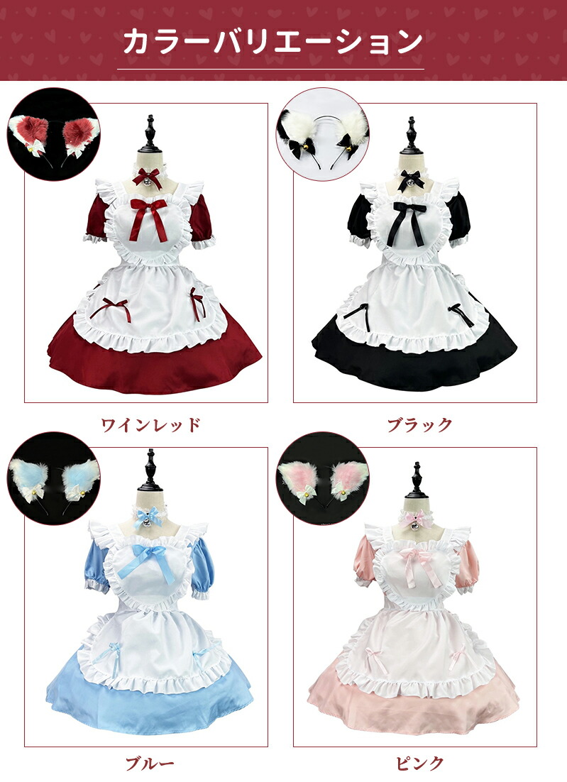 メイド服 コスプレ 猫 ネコ耳 かわい ホビー 続々登場 ワインレッド ライトブルー キャンディピンク クラシックブラック S M L XL 2XL 3XL 4XL 5XL