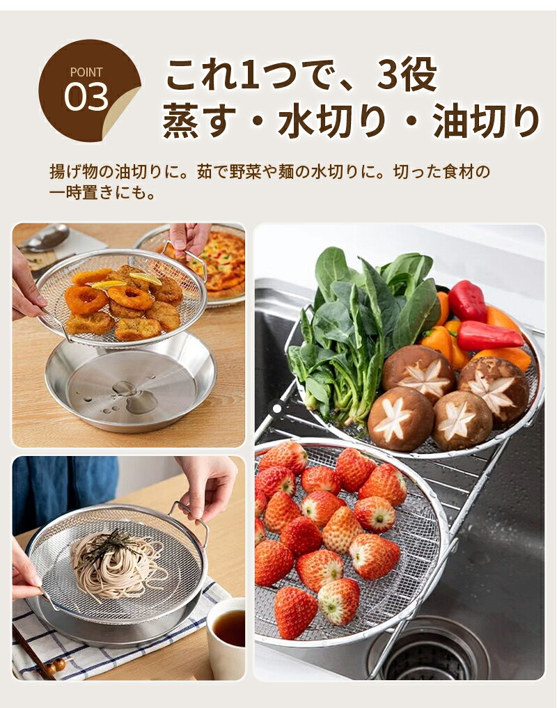 蒸しざる ステンレス皿 蒸しかご 2点 調理 製菓道具 調理器具 蒸し器 通販 18cm 20cm 22cm 24cm 26cm