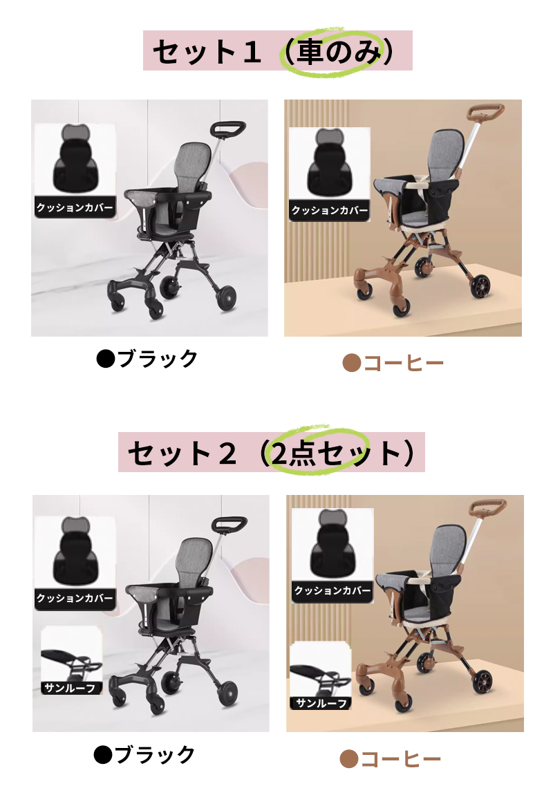 ベビーカー 軽量 折りたたみ 機内持ち ベビー ベビーカー ベビーカー本体 続々登場 ブラック コーヒー セット1(車のみ) セット2(2点セット) セット3(5点セット)