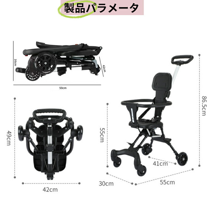 ベビーカー 軽量 折りたたみ 機内持ち込み キッズカート ストローラー ハンディー バギー 持ち運び ポータブル サンルーフ コンパクト 超軽量 耐荷重25kg 両対面 手押し車 4輪 子ども 自立