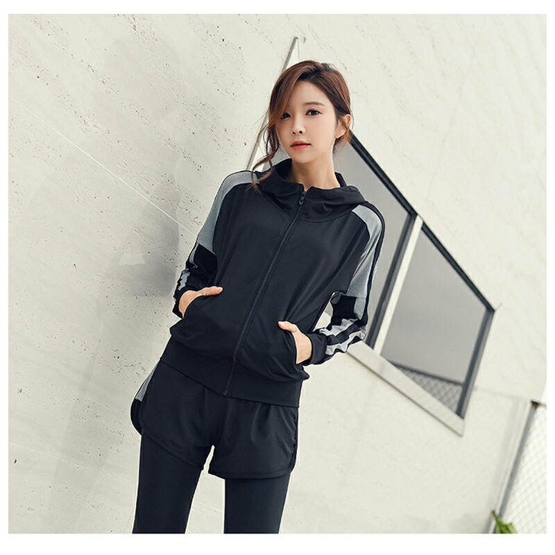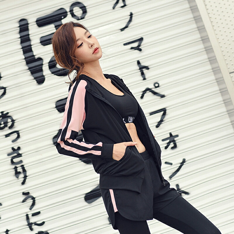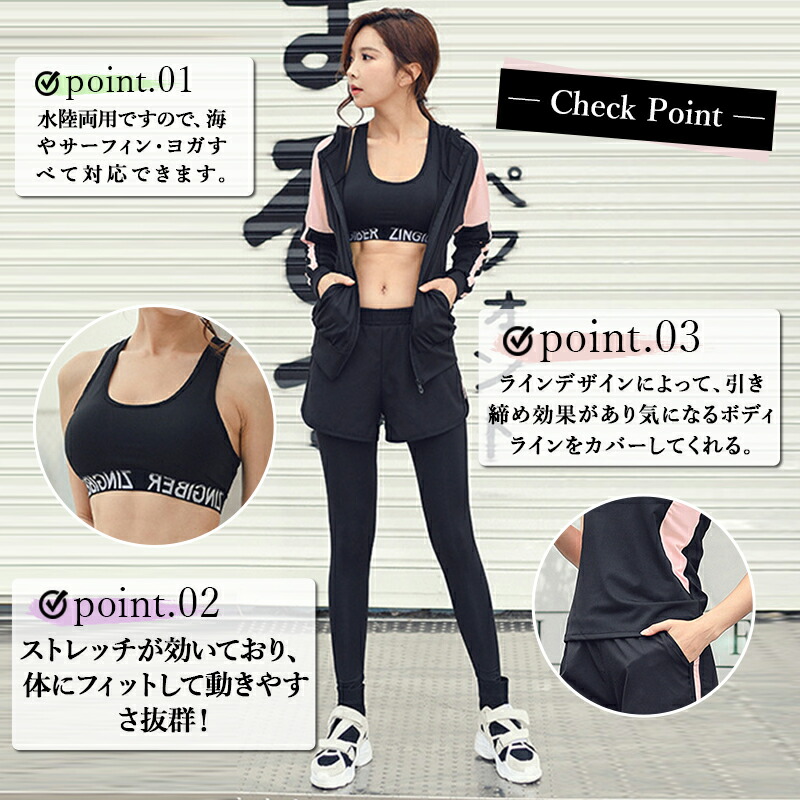 水着 水陸両用 フィットネス 5点セット レディース 体型カバー ヨガ ラッシュガード 長袖 上下セット スポブラ レギンス ショートパンツ Tシャツ ジム 運動用 シンプル 短パン スポーツウェア