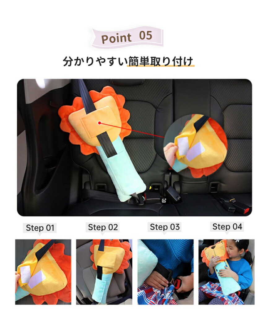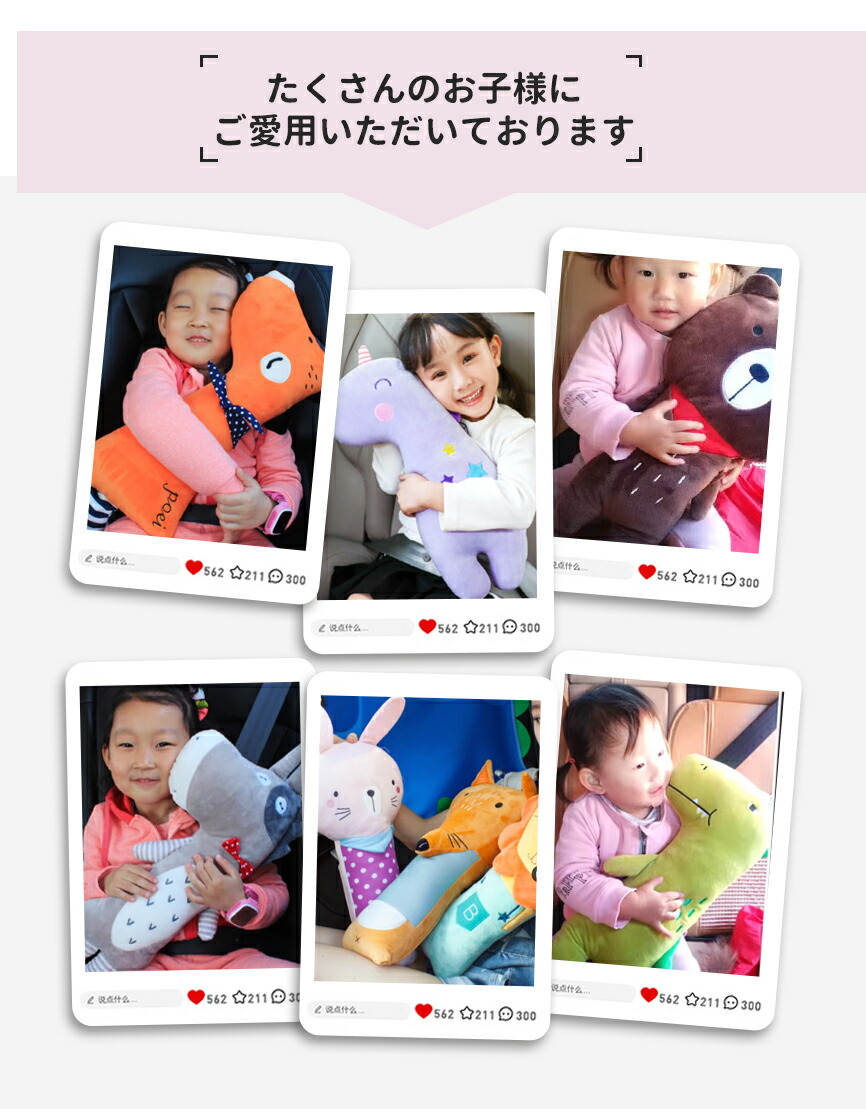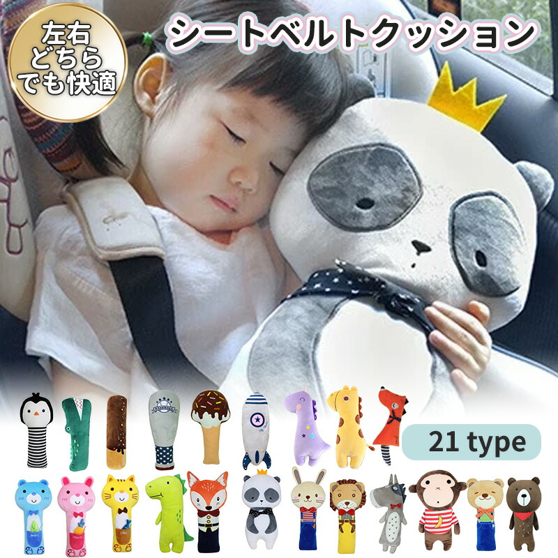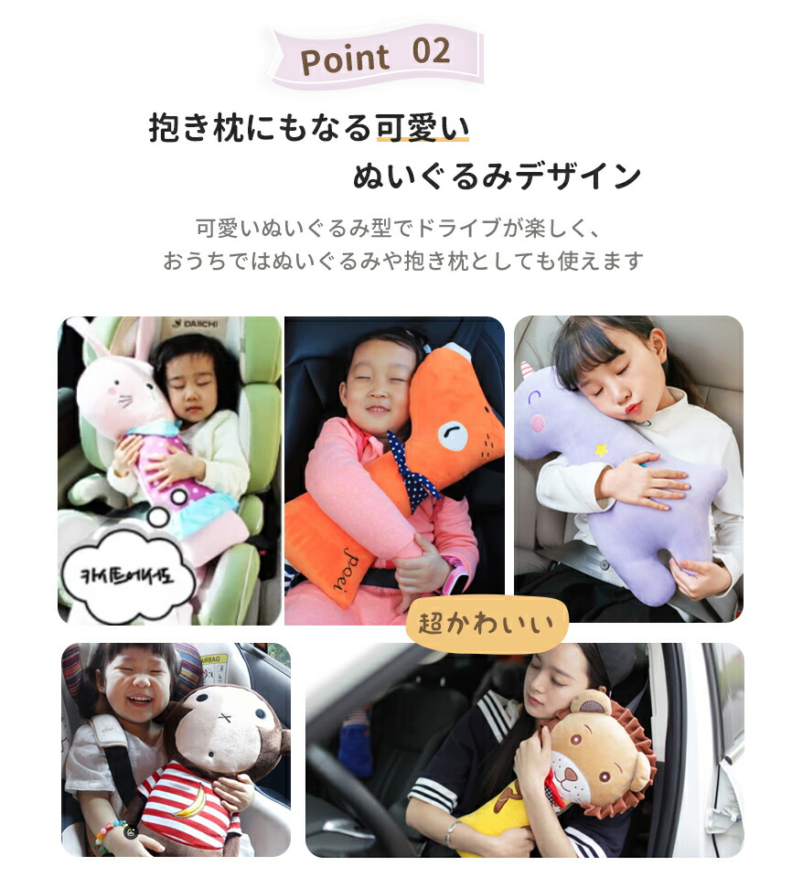 シートベルトクッション 子供 シートベルトカバー 車 ベルトカバー こども カバー シートベルト クッション 枕 ドライブ ぬいぐるみ 子供用 キャラクター 車用 旅行 洗える 取り外 首かっくん防止