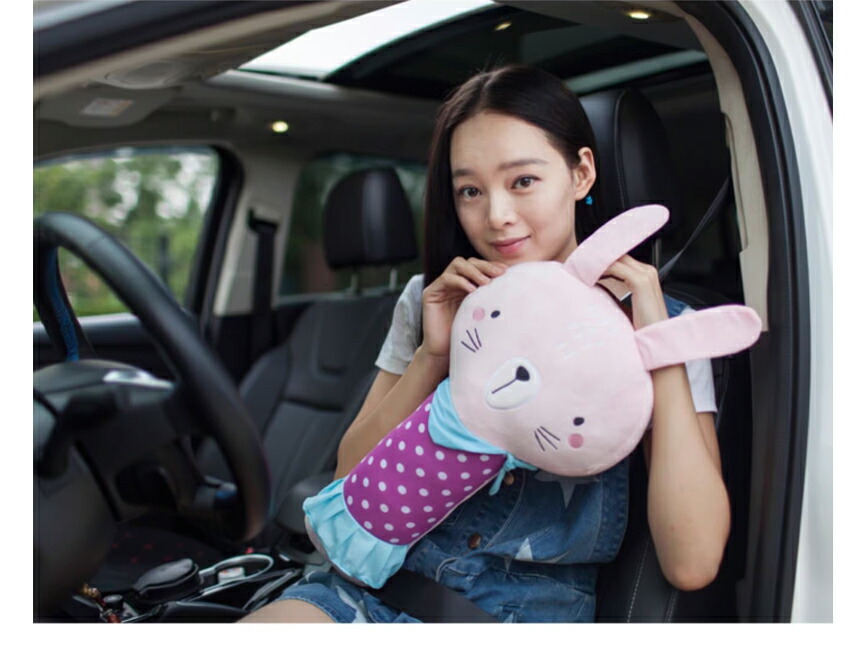 シートベルトクッションは、柔らかいぬいぐるみ枕付きで、子供から大人まで幅広い年齢層に対応。肩や首への負担を軽減し、長時間のドライブでも快適な乗り心地を提供します。