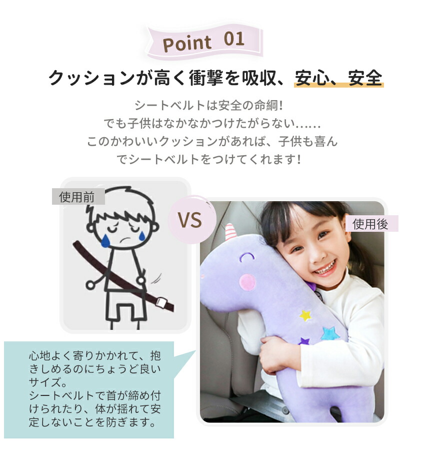 このシートベルトクッションは、家族全員が快適にドライブを楽しめる車内必須アイテムです!