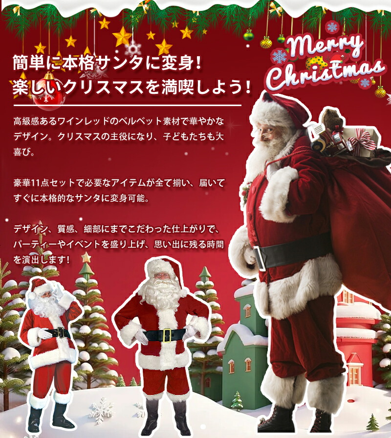 サンタ コスプレ サンタクロース クリ ホビー 続々登場 5点セット 8点セット 11点セット L XL 2XL 3XL