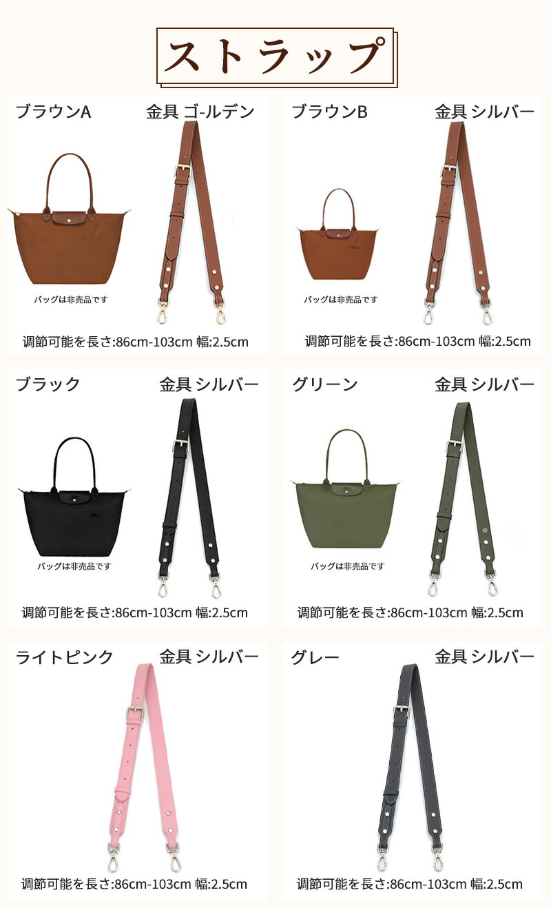 ストラップ ロンシャン ショルダーバッ バッグ 小物 ブランド雑貨 人気 尾錠+ストラップ ストラップ 尾錠 ブラウンA ブラウンB ブラック グリーン ライトパープル グレー オウフンイロ ライトピンク ブルー イエロー グレー 1 桜色 オレンジ ベージュ