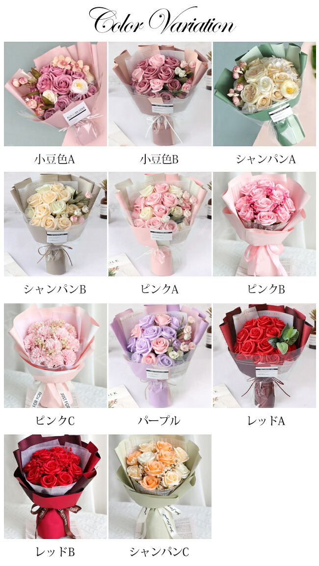 ソープフラワー 新作 ボックスフラワー 小豆色A 小豆色B シャンパンA シャンパンB ピンクA ピンクB ピンクC パープル レッドA レッドB シャンパンC