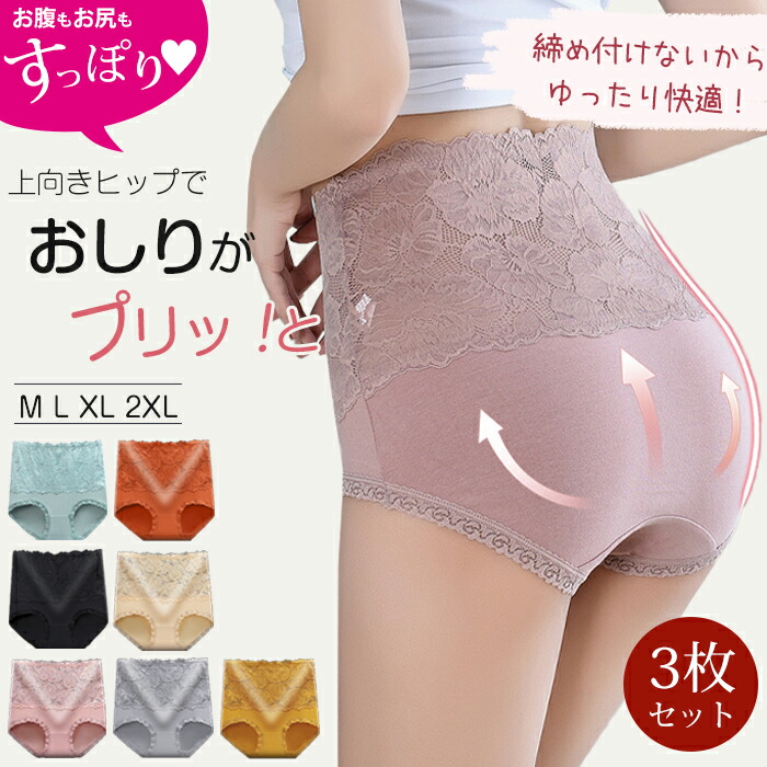 3枚セット ハイウエストショーツ レー レディース インナー 下着 ショーツ スタンダード 通販 ブラック ベージュ ピンク グレー グリーン イエロー キャラメル M L XL