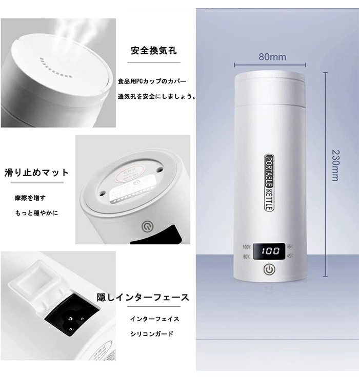 高品質 電気ケトル ポータブル電気ケト 注ぎ口蓋 密閉式蓋
