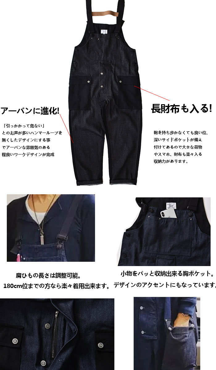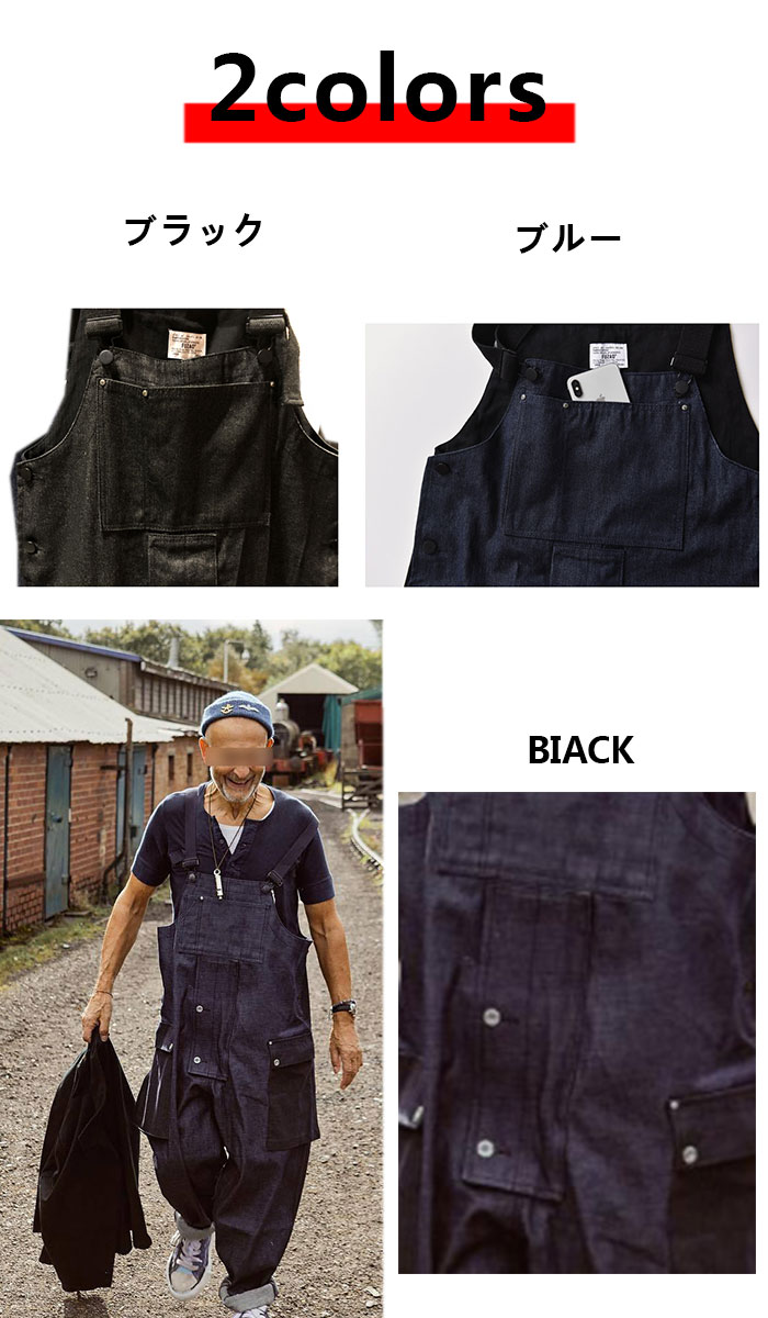 オーバーオール メンズ 大きいサイズ メンズファッション 早い者勝ち ブラック(前後黒色) ネイビー(ネイビーと黒配色) M L XL 2XL