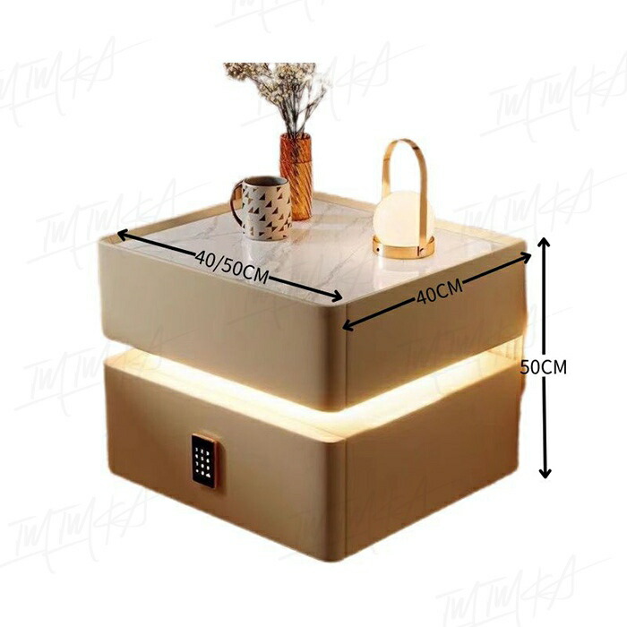 サイドテーブル ナイトテーブル 多機能 ホワイト ダークグレー ライトグレー ベージュ ワイヤレス充電 ワイヤレス充電+金庫 ワイヤレス充電+金庫+スピーカー