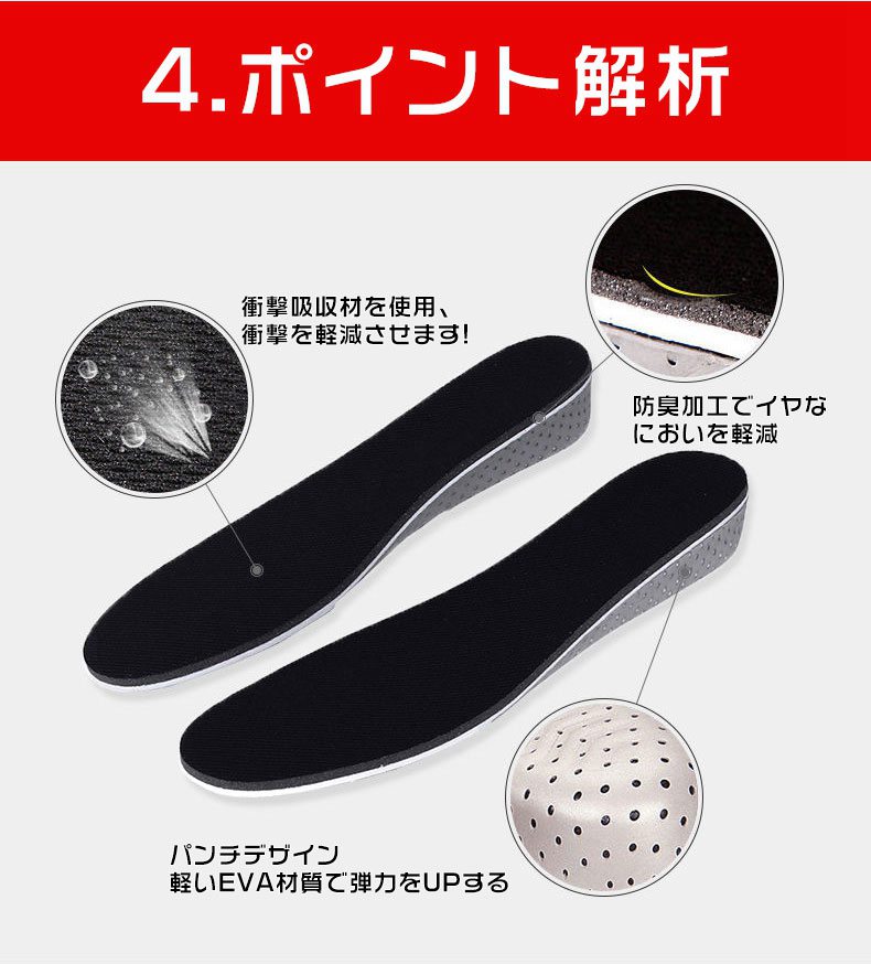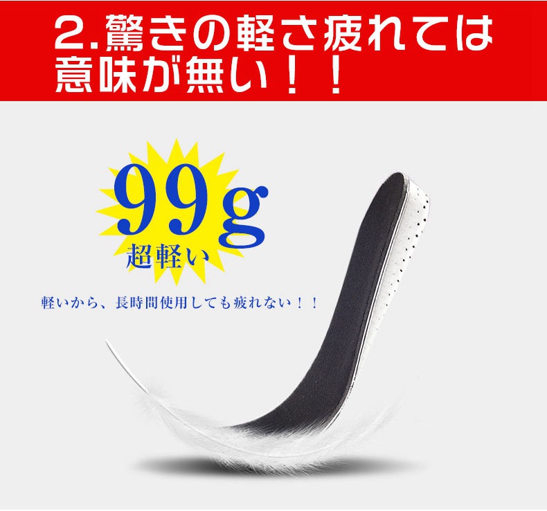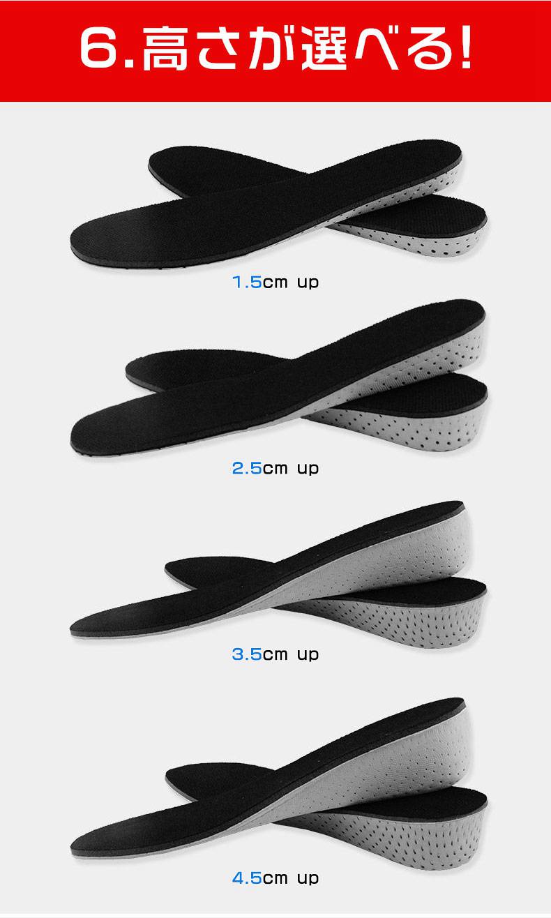 シークレットインソール中敷き 衝撃吸収 身長アップ 身長UP シークレット クッション 中敷き シークレットシューズメンズ レディース かかと メンズ男女兼用 背が高く 悩み 足を長く脚長 高さ選べる
