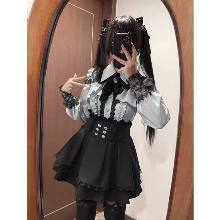 シアースリーブ ドッキングシャツ ボウタイシャツブラウス