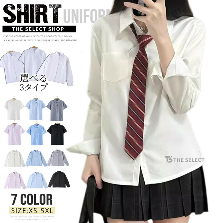 スクールシャツ 半袖 長袖 女子 制服 XS S M L XL 2XL 3XL 4XL 5XL Style1/白 Style1/黒 Style1/グレー Style1/ブルー Style1/アイボリー Style1/水色 Style2/黒 Style2/グレー Style2/ブルー Style2/アイボリー Style2/水色 Style2/白 Style2/ピンク Style3/グレー Style3/ブルー Style3/アイボリー Style3/水色 Style3/白 Style3/ピンク Style3/黒