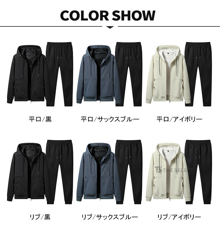 ジャージ 上下 メンズ セットアップ スポーツ アウトドア 人気 M L XL 2XL 3XL 4XL 5XL 平口/黒 平口/サックスブルー 平口/アイボリー リブ/黒 リブ/サックスブルー リブ/アイボリー