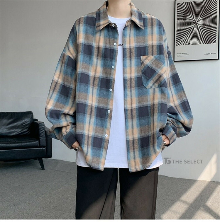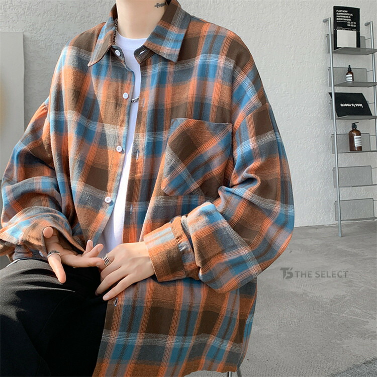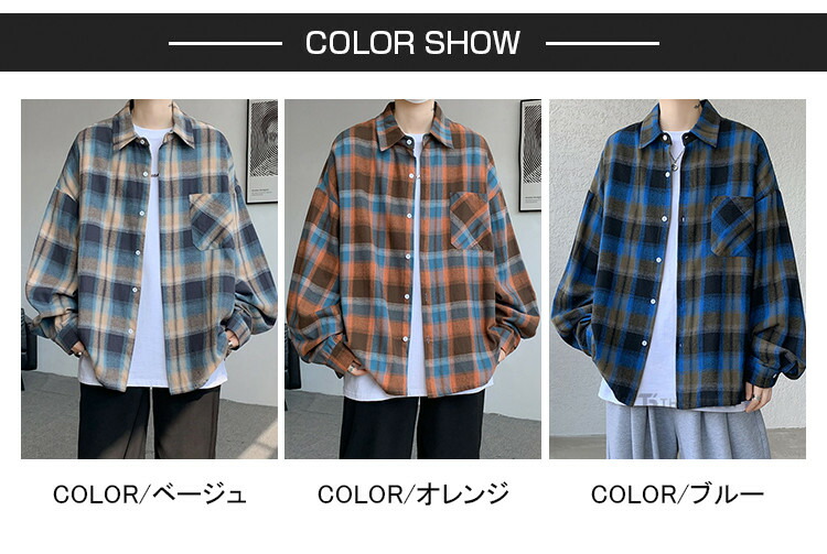 シャツ メンズ 長袖 ビッグシルエット トップス カジュアルシャツ 続々入荷中 M L XL 2XL 3XL 4XL 5XL ベージュ オレンジ ブルー