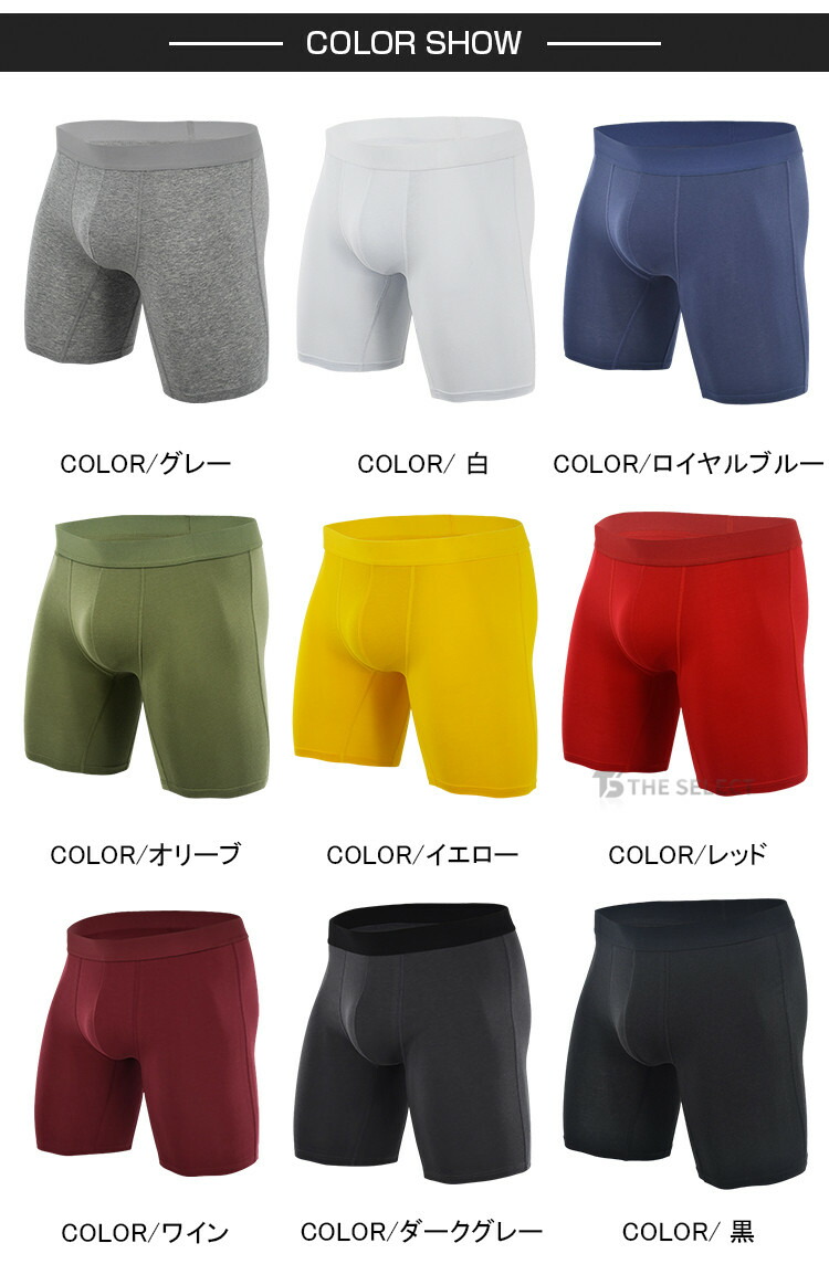 ボクサーパンツ ロング メンズ 下着 インナー 下着 ナイトウエア 通販 M L XL 2XL 3XL 4XL グレー 白 ロイヤルブルー オリーブ イエロー レッド ワイン ダークグレー 黒
