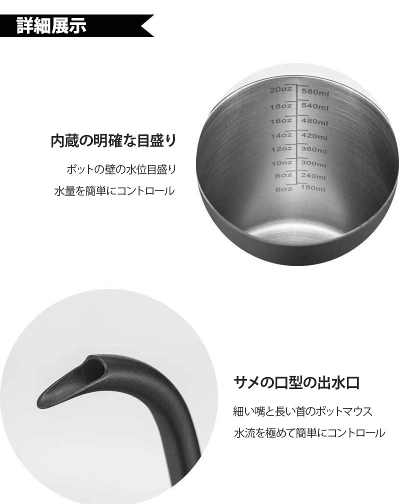 コーヒーポット 直火 コーヒーケトル キッチン用品 食器 調理器具 通販 シルバー ブラック ローズゴールド