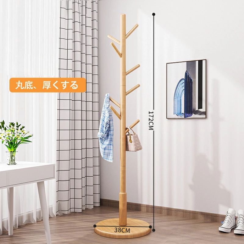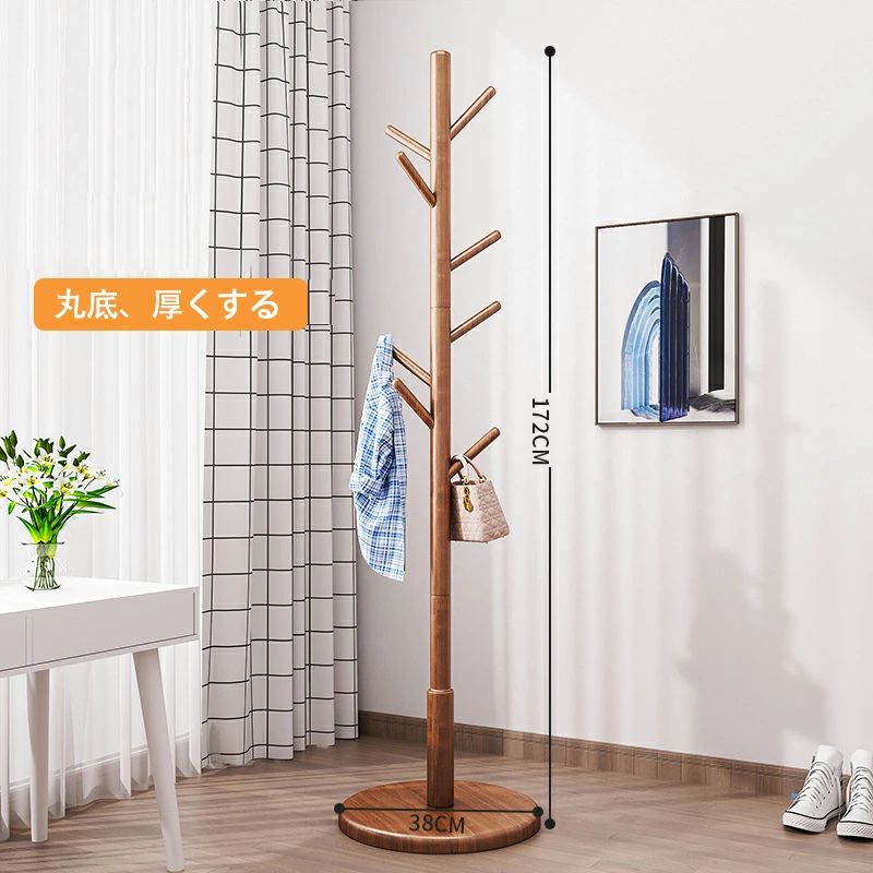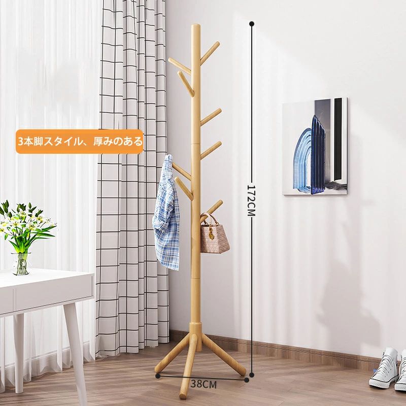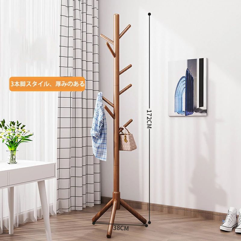 木製 コートハンガー ハンガーラック 木目色 ウォールナット色 アイボリーホワイト 3本の脚と8つのフック ディスク8フック