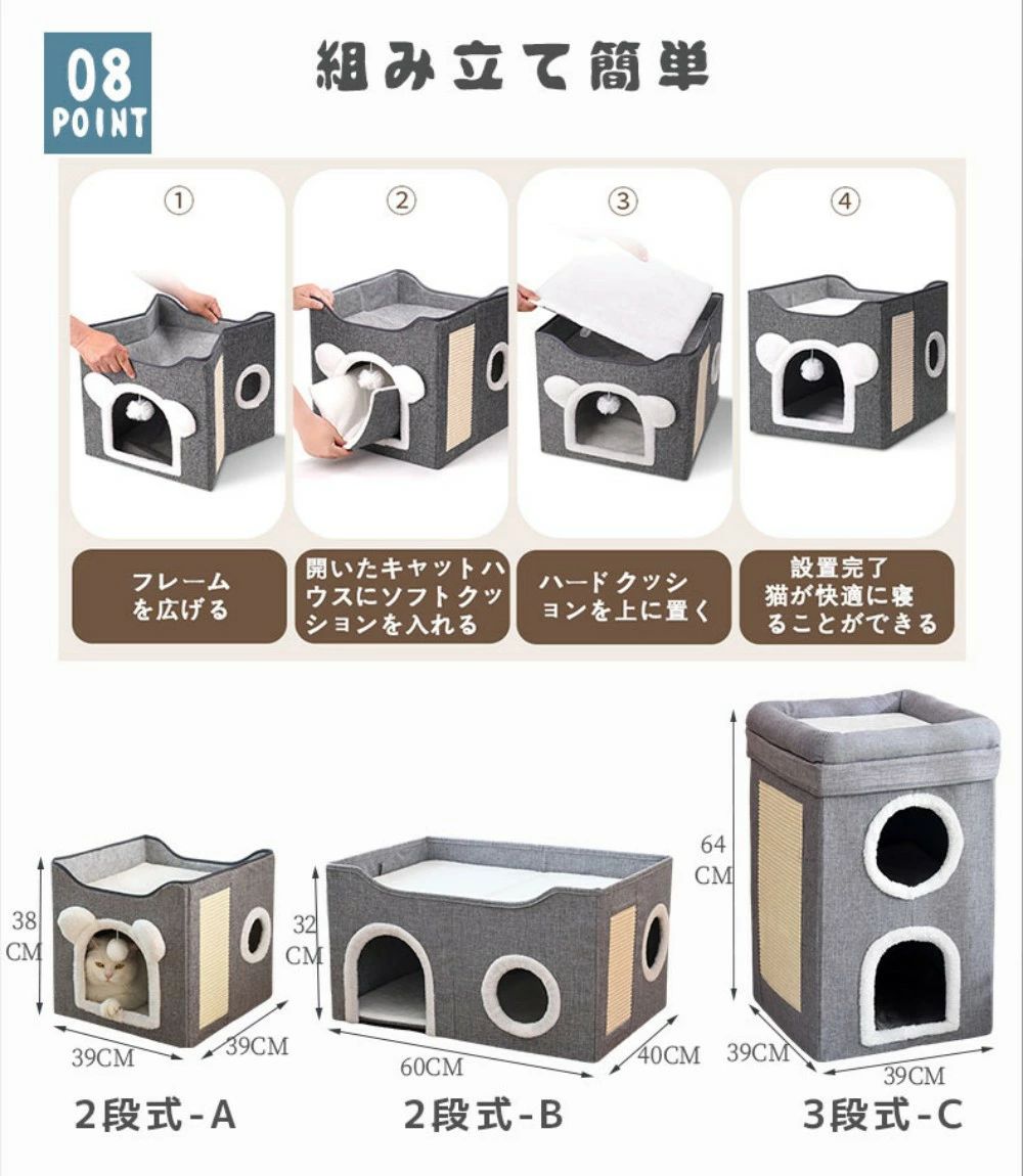 キャットタワー ドーム型ベッド 猫ハウ ペット ペットグッズ 通販 2段式-A 39x39x38cm 2段式-B 60x40x32cm 3段式-C 39x39x64cm