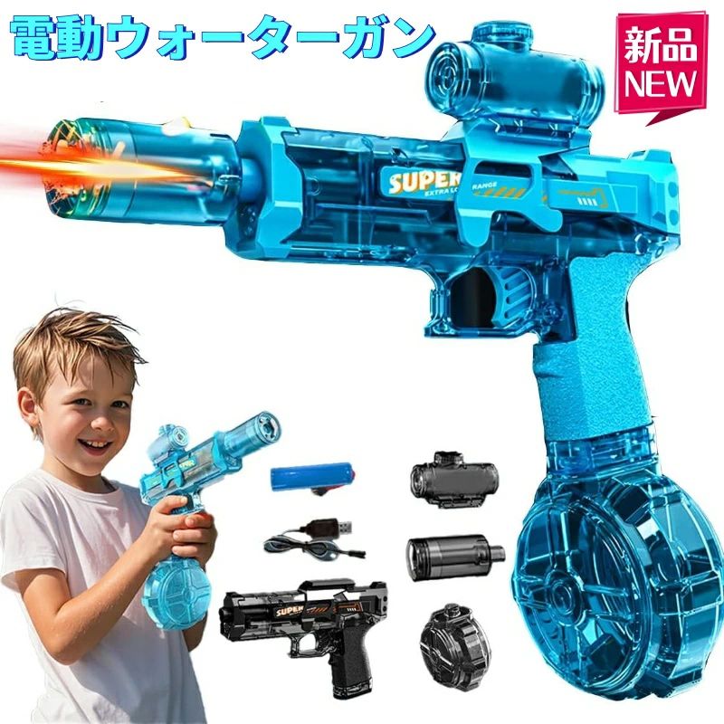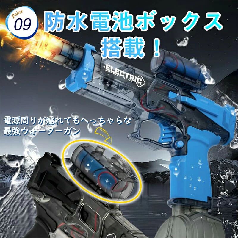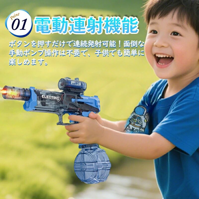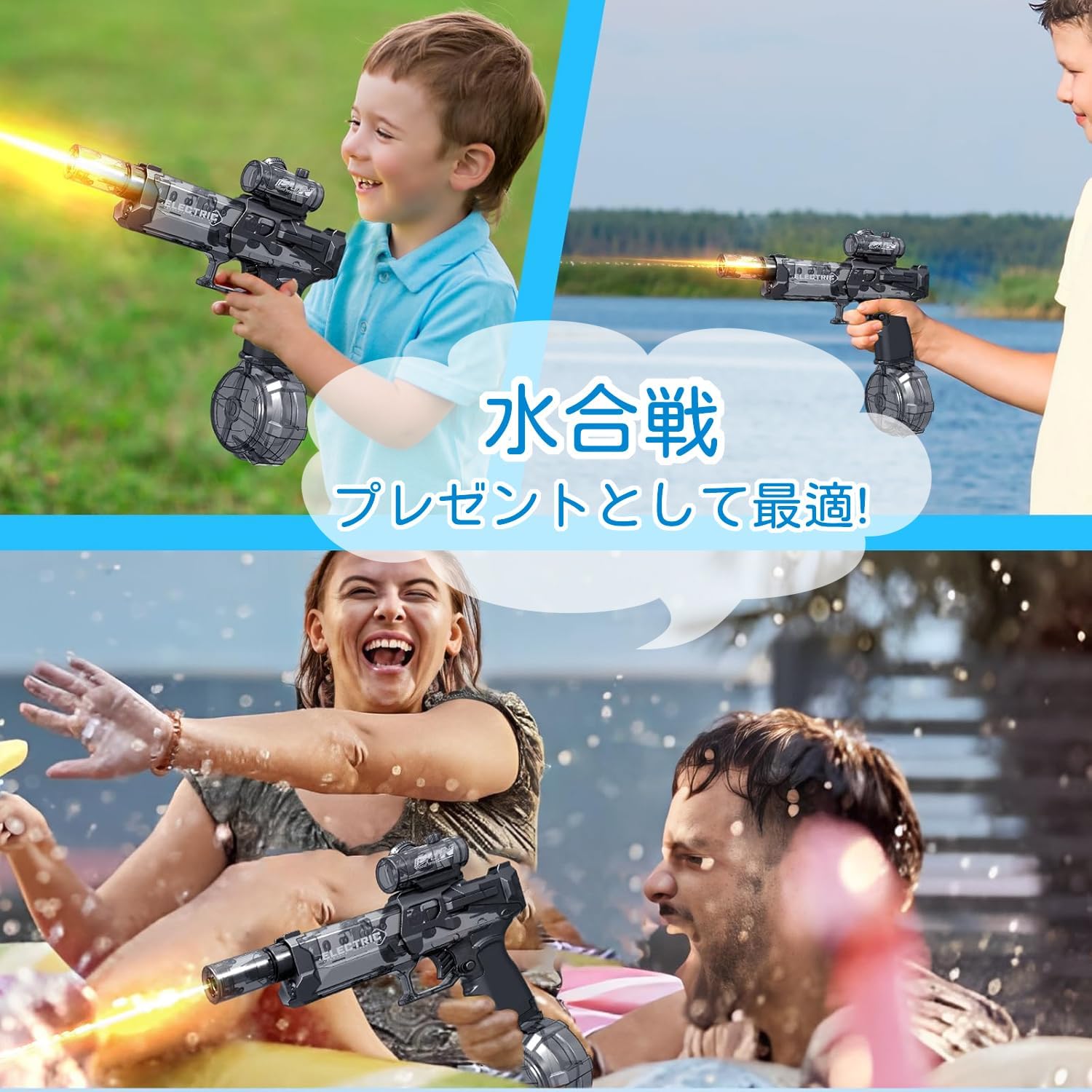 2025最新 水鉄砲 電動 大容量 電 おもちゃ プール 水遊び 水鉄砲 続々入荷中 ブラック 350ML ブルー 350ML