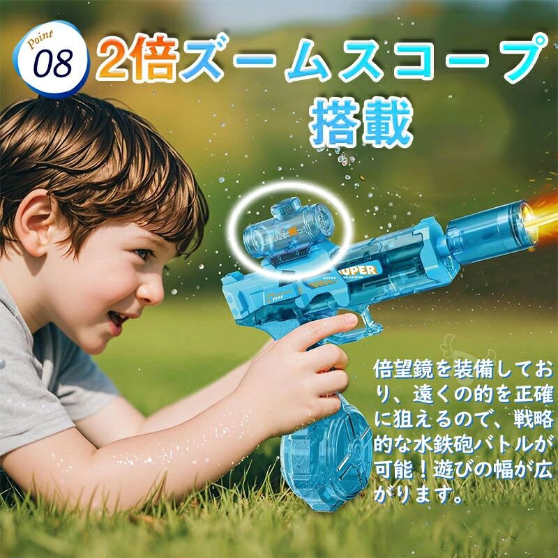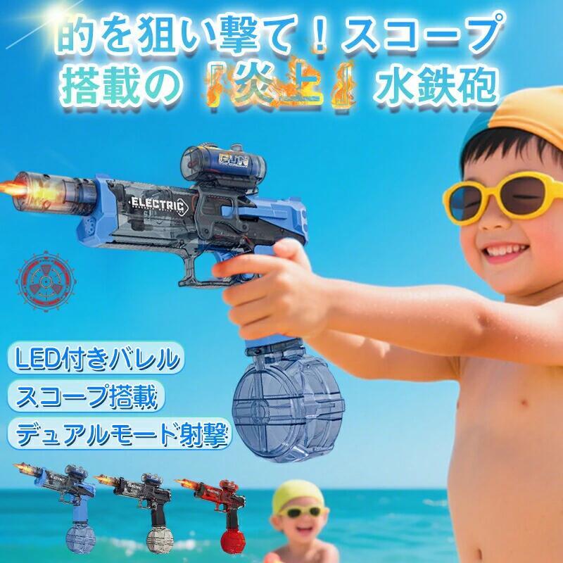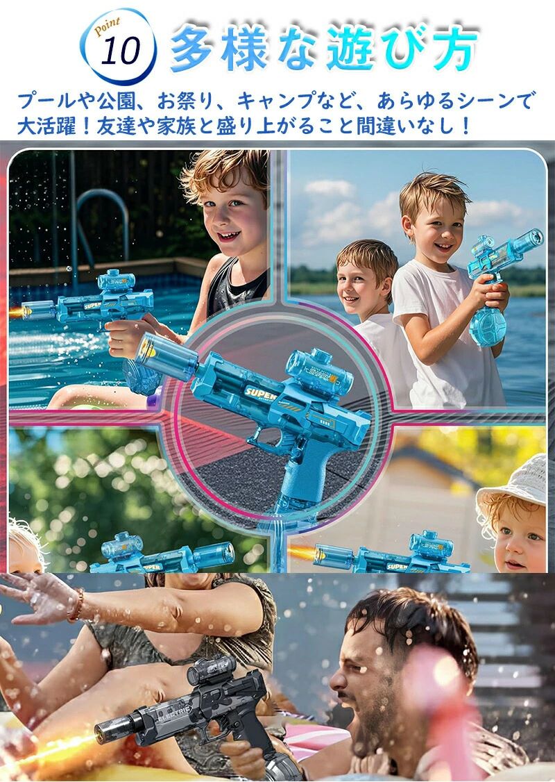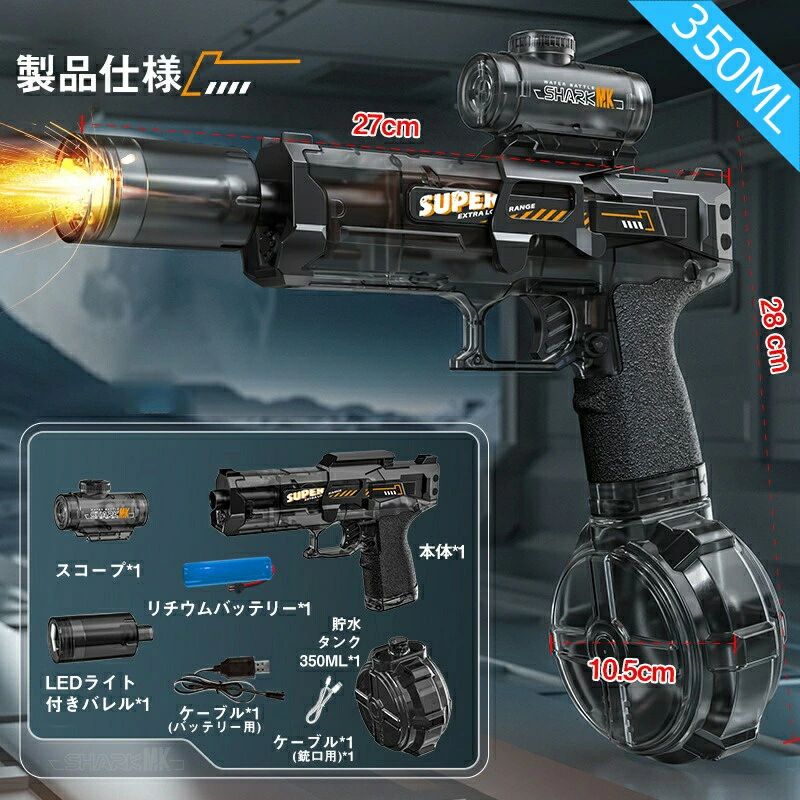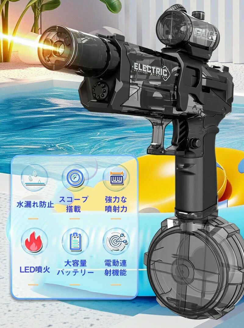 2025最新 水鉄砲 電動 大容量 電 おもちゃ プール 水遊び 水鉄砲 続々入荷中 ブラック 350ML ブルー 350ML