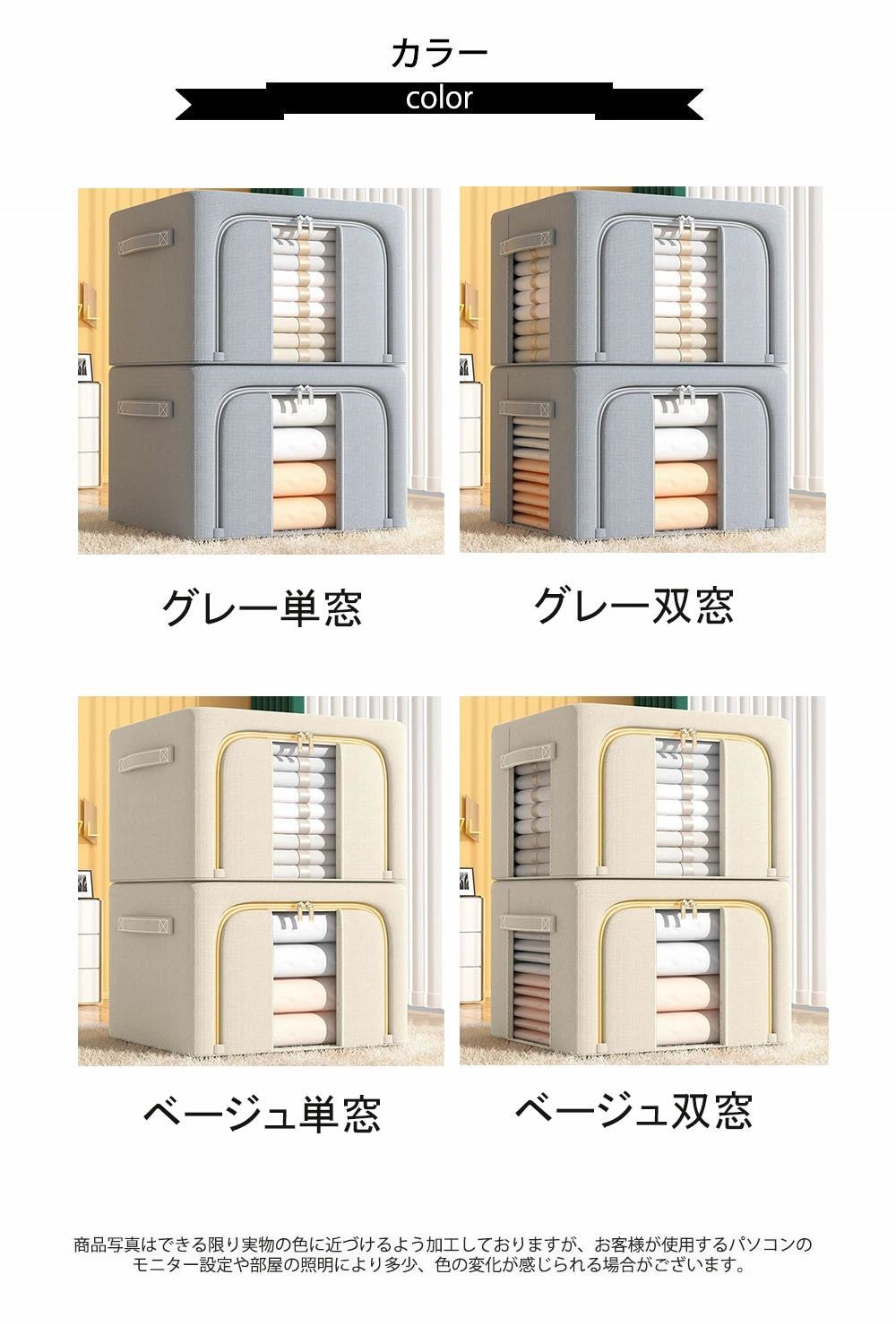 収納ボックス ワイヤー入り 布 折りた グレー単窓 グレー双窓 ベージュ単窓 ベージュ双窓 24L(40*30*20cm) 72L(50*40*33cm) 110L(60*42*40cm)