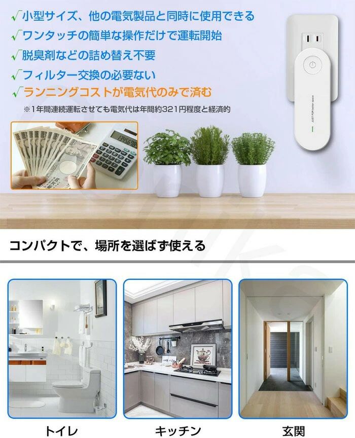 ミニ空気清浄機 コンセント マイナスイ ホワイト グリーン ピンク ブラック