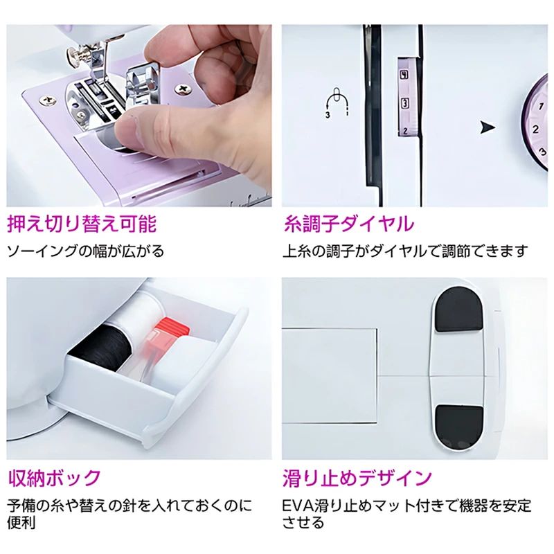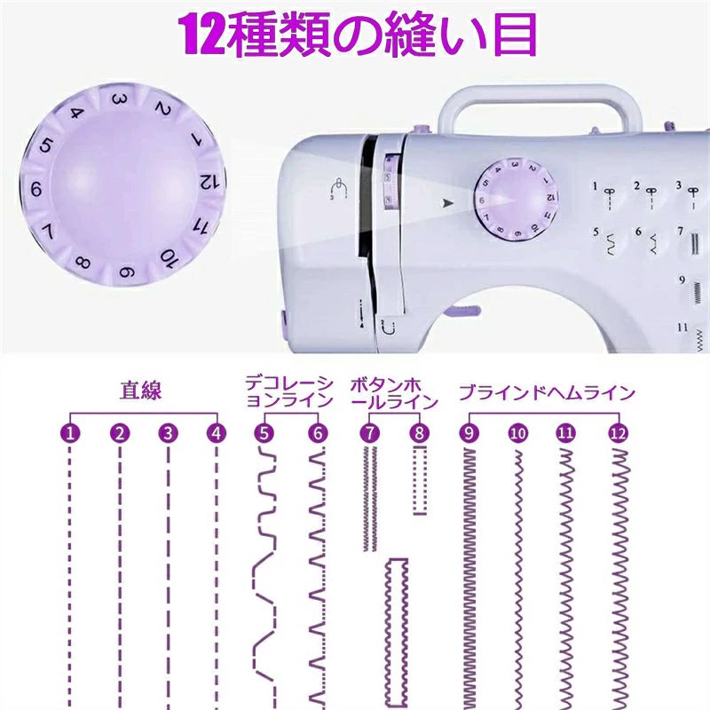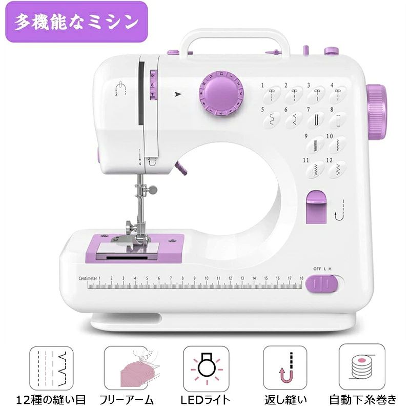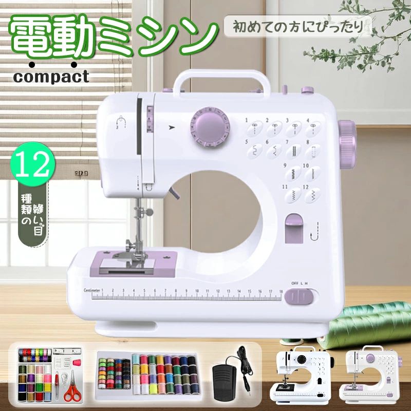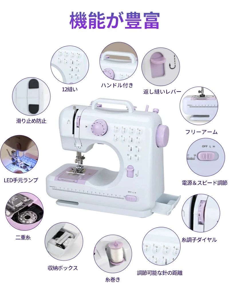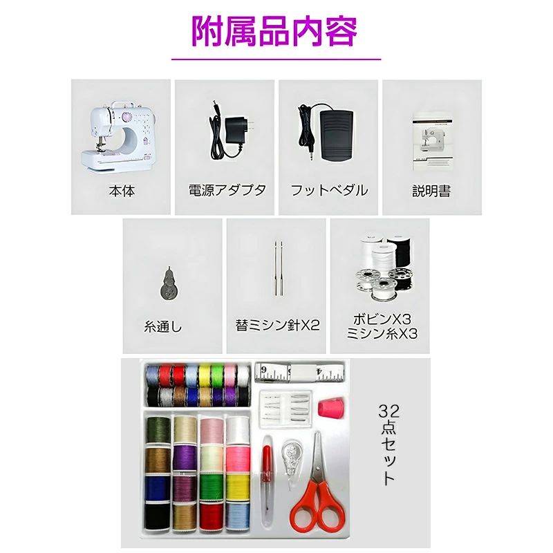 ミシン 初心者 コンパクト 電動ミシン パープルミシン(32点セット付き) ブラックミシン(32点セット付き) 不要 60点糸セット 拡張テーブル 60点糸セット+拡張テーブル