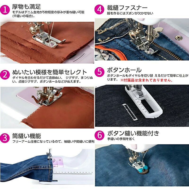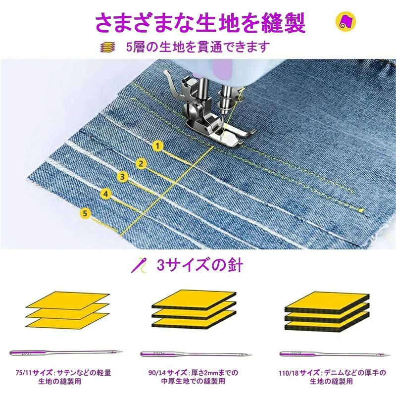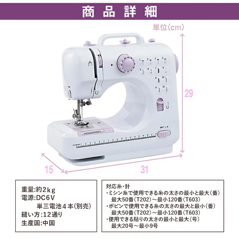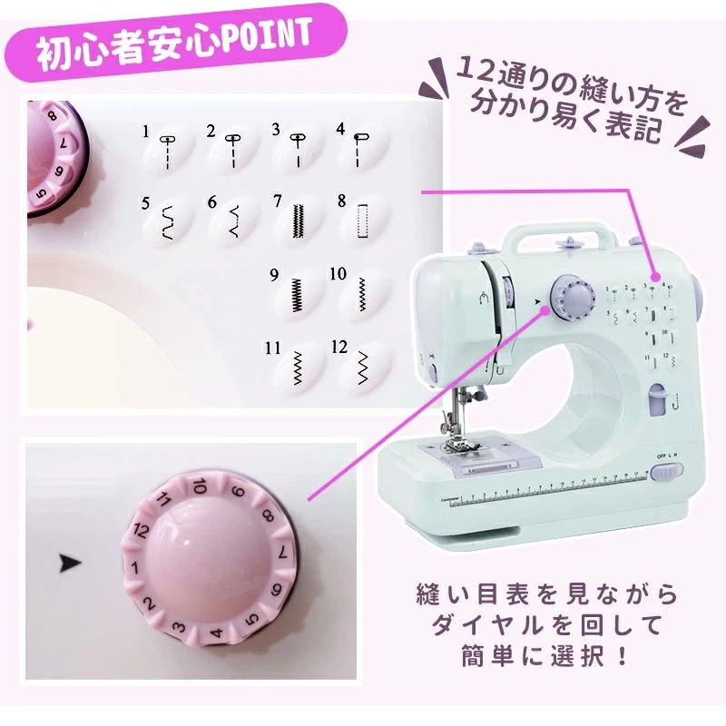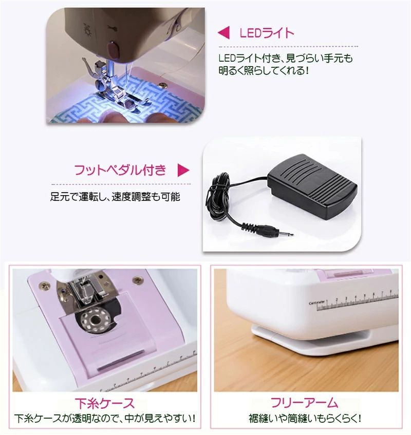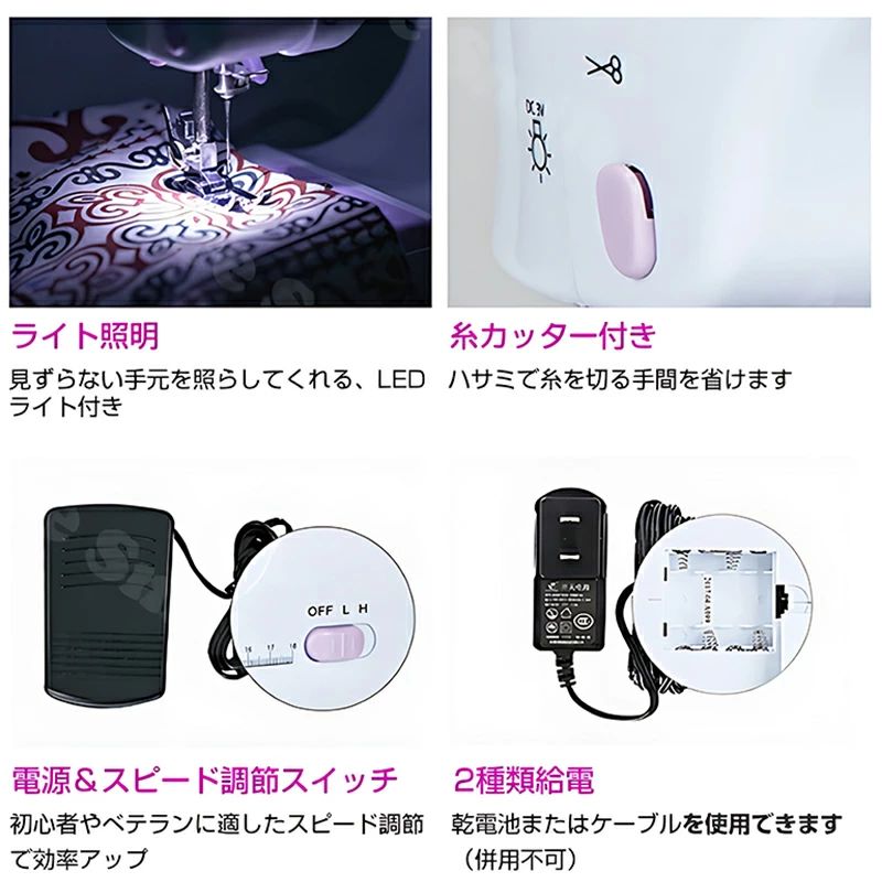 ミシン 初心者 コンパクト 電動ミシン パープルミシン(32点セット付き) ブラックミシン(32点セット付き) 不要 60点糸セット 拡張テーブル 60点糸セット+拡張テーブル