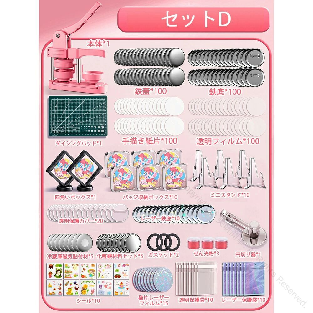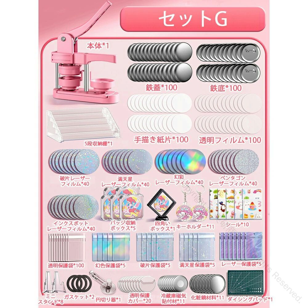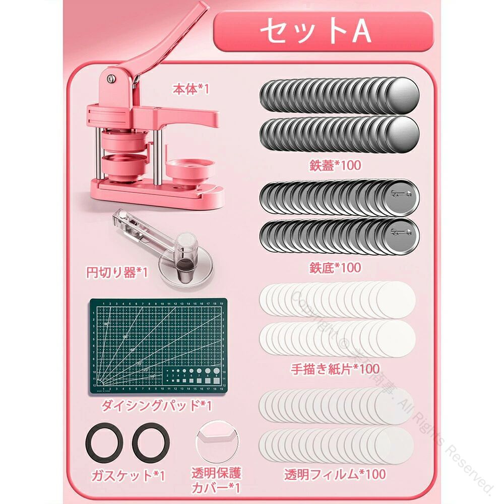缶バッジマシーン 58mm金型付き 缶 ホビー 人気 ピンク グリーン セットA セットB セットC セットD セットE セットF セットG セットH 本体だけ*1