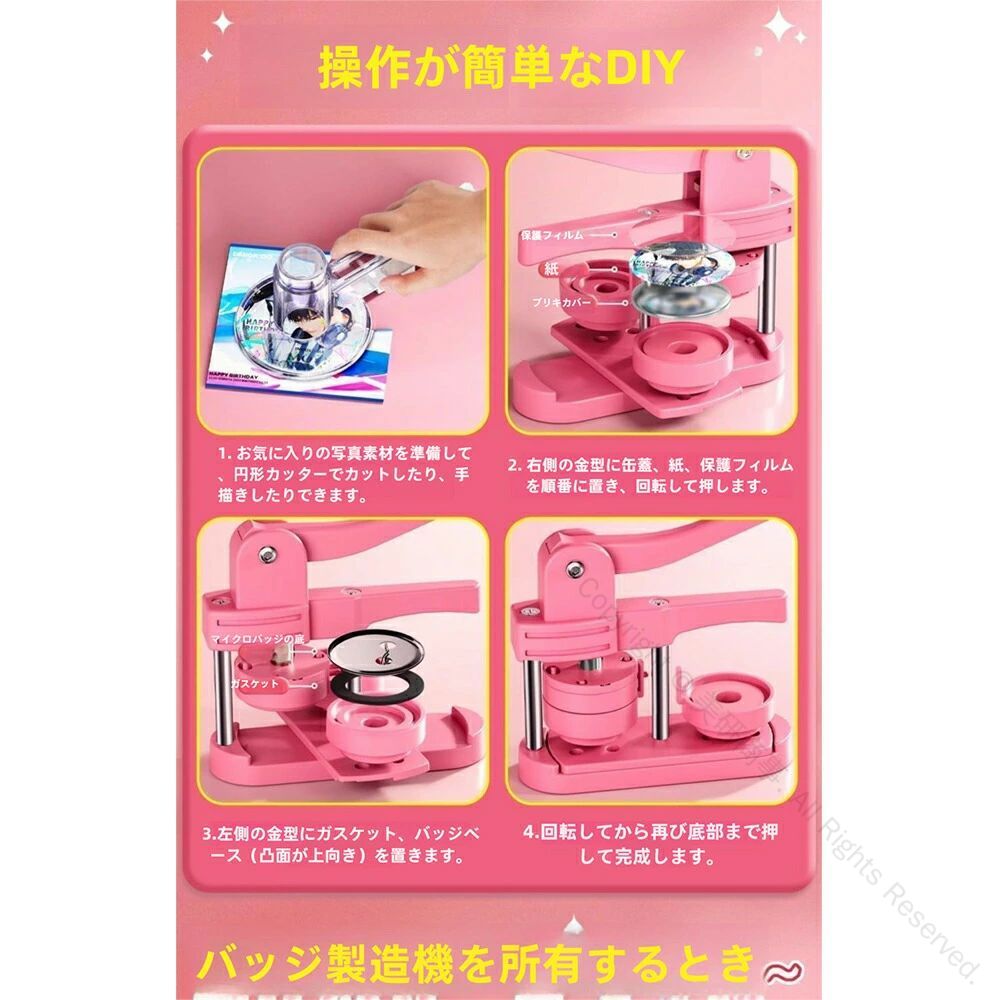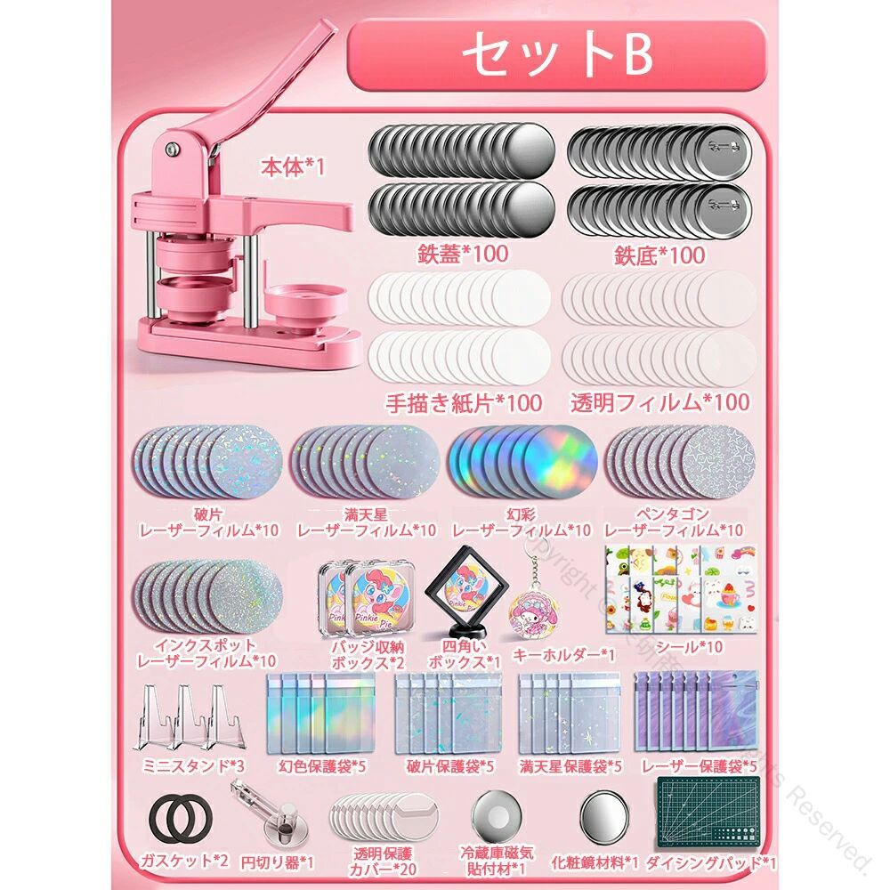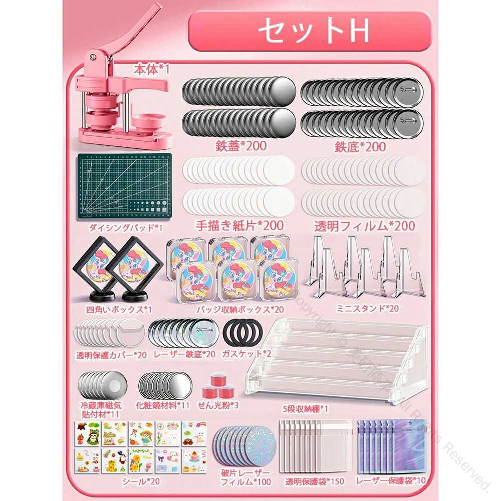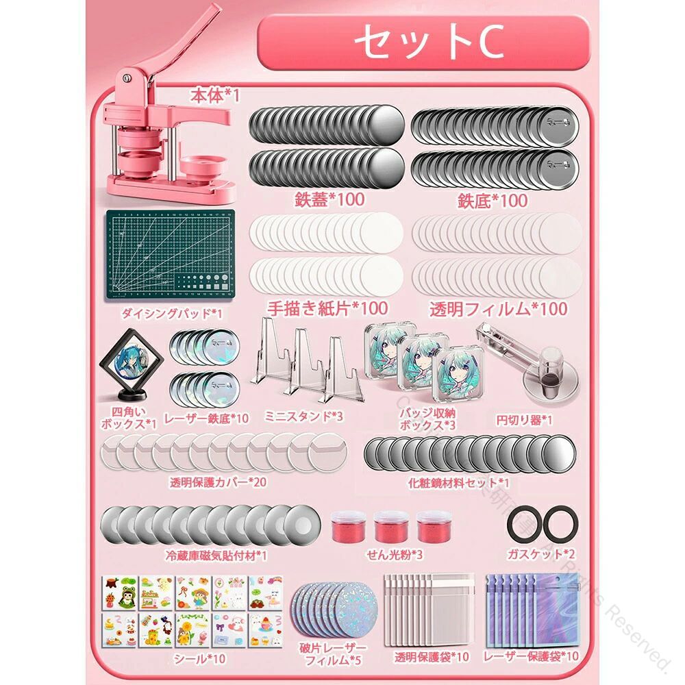 缶バッジマシーン 58mm金型付き 缶 ホビー 人気 ピンク グリーン セットA セットB セットC セットD セットE セットF セットG セットH 本体だけ*1