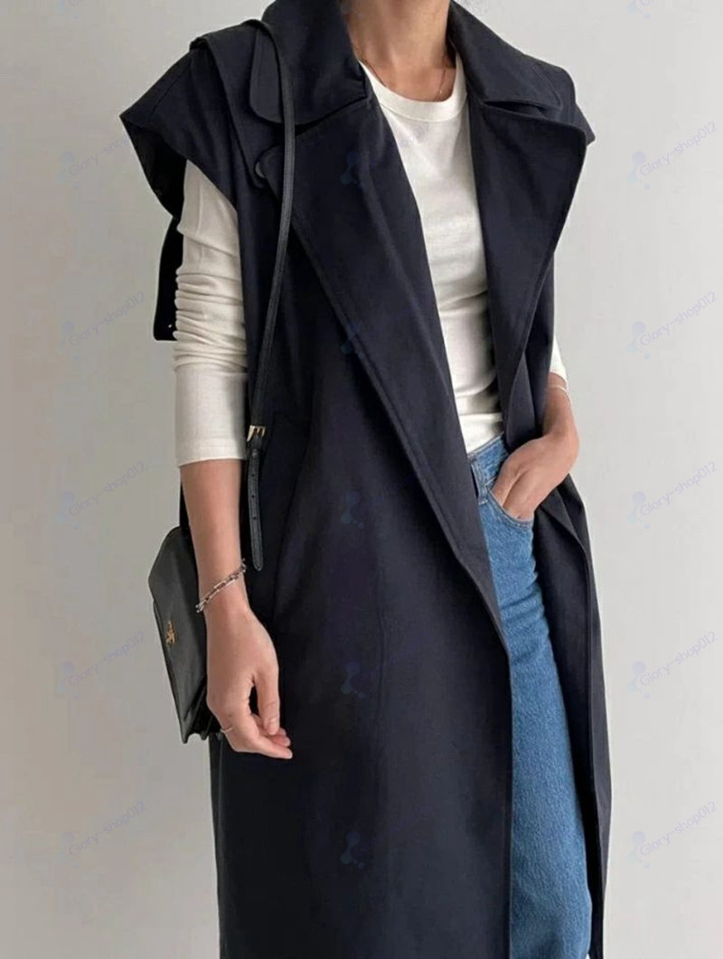 ノースリーブ トレンチコート レディース 羽織り ベスト ゆったり トレンチベスト ジャケット ロングジレ ロングベスト 春 秋 冬 大人 OL 通勤 30代 40代 50代 20代