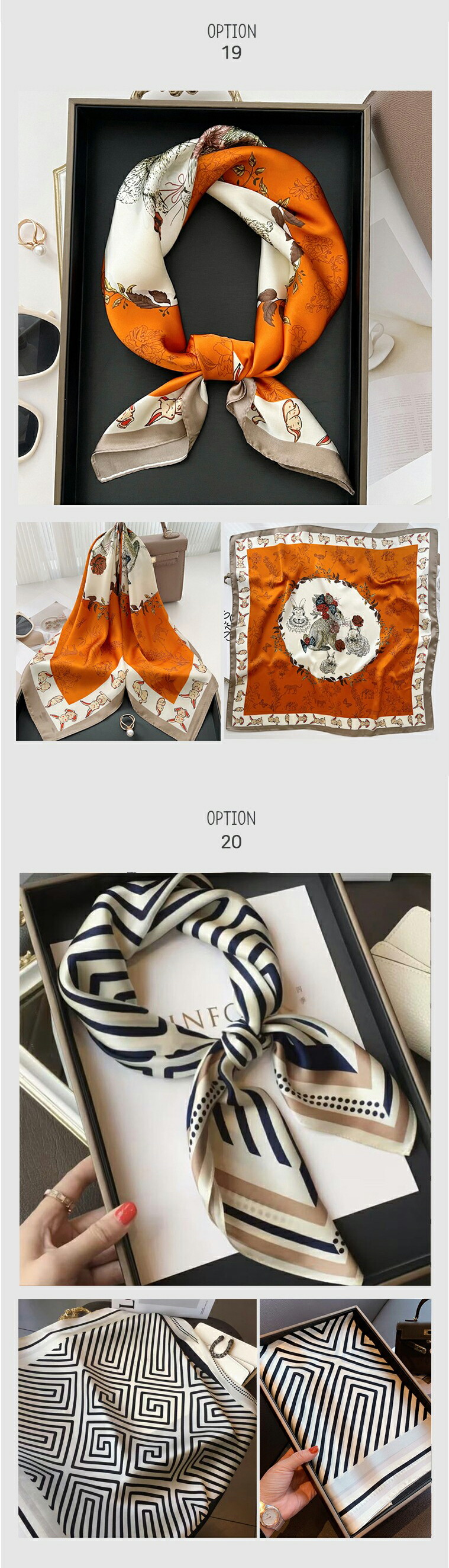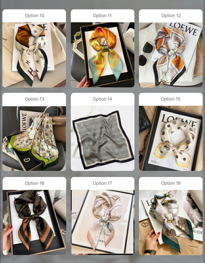 シルク風スカーフ|おしゃれ バンダナ バッグ 小物 ブランド雑貨 新登場! option01 option02 option03 option04 option05 option06 option07 option08 option09 option10 option11 option12 option13 option14 option15 option16 option17 option18 option19 option20 option21 パッケージケース(10枚入)
