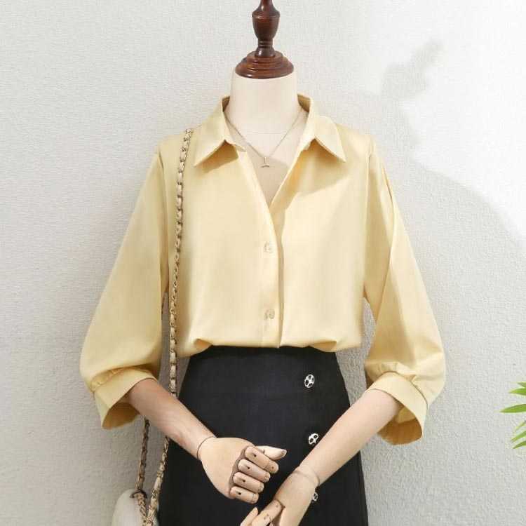 シャツ レディース ブラウス 7分袖 レディースファッション 新登場! ホワイト イエロー ベージュ ブルー S M L XL 2XL 3XL