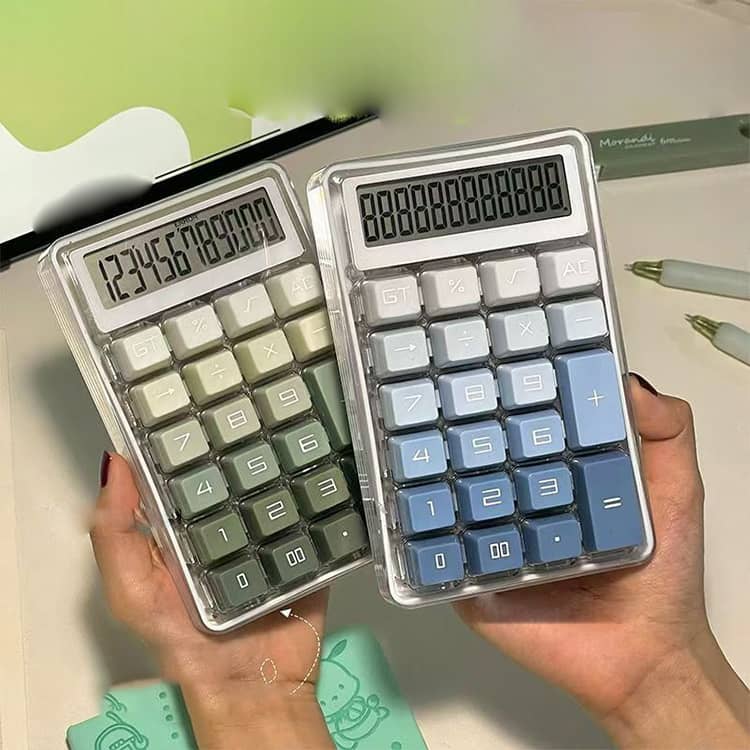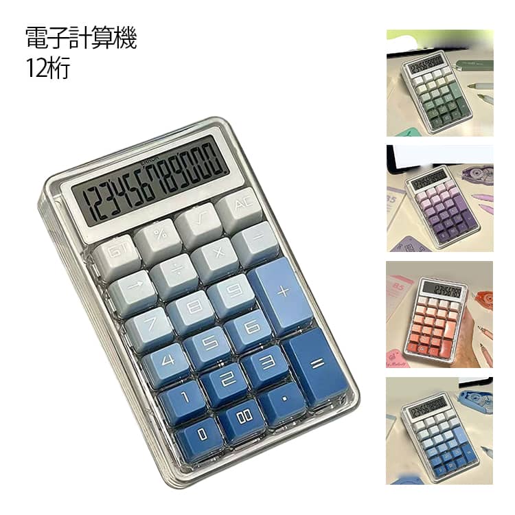ぽこぽこ 電卓 かわいい 透明 12桁 グリーン ピンク ブルー パープル