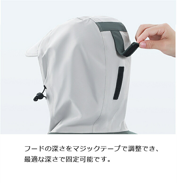 ・フード付き&顔が濡れにくいハイネック仕様なので、前から雨が強く吹き付ける日もしっかりとガード!