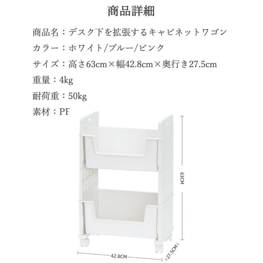 デスクワゴン キャスター スリム マガ ホワイト ブルー ピンク