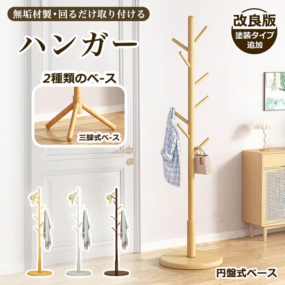 ポールハンガー コートハンガー ラック ナチュラル ウォールナット ホワイト パイン製三脚ベース パイン製円形ベース ブナ製三脚ベース ブナ製円形ベース