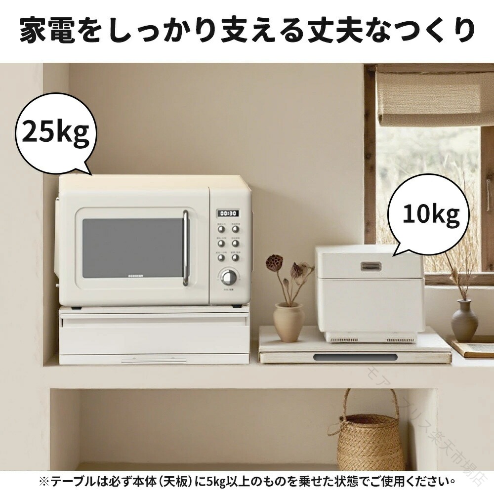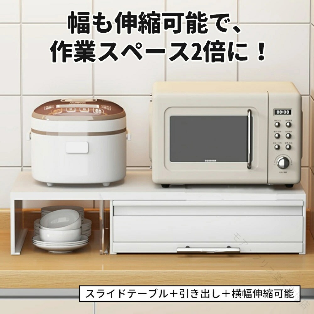 レンジを置く台 一時置き ちょい置き 食器置き 食材置き 調理スペース 調理台 調理場 引き出し収納 小物収納 隠す収納 隠して収納 すっきり収納 省スペース収納 スペース活用 デッドスペース活用 スペース有効活用 収納力 作業効率化 キッチン小物 キッチンツール キッチンアイテム キッチン雑貨 キッチングッズ 調理器具 調理道具 カトラリー収納 しゃもじ アルミホイル ラップ ミトン 布巾 キッチンタオル 輪ゴム お弁当グッズ 保存容器 マグカップ コップ 湯呑み テーブルウェア お皿 食器 調味料 スパイス 乾物 茶葉 ティーバッグ コーヒーフレッシュ コーヒーシュガー ガムシロップ 電子レンジ オーブンレンジ オーブントースター 電気ケトル 炊飯器 炊飯ジャー コーヒーメーカー