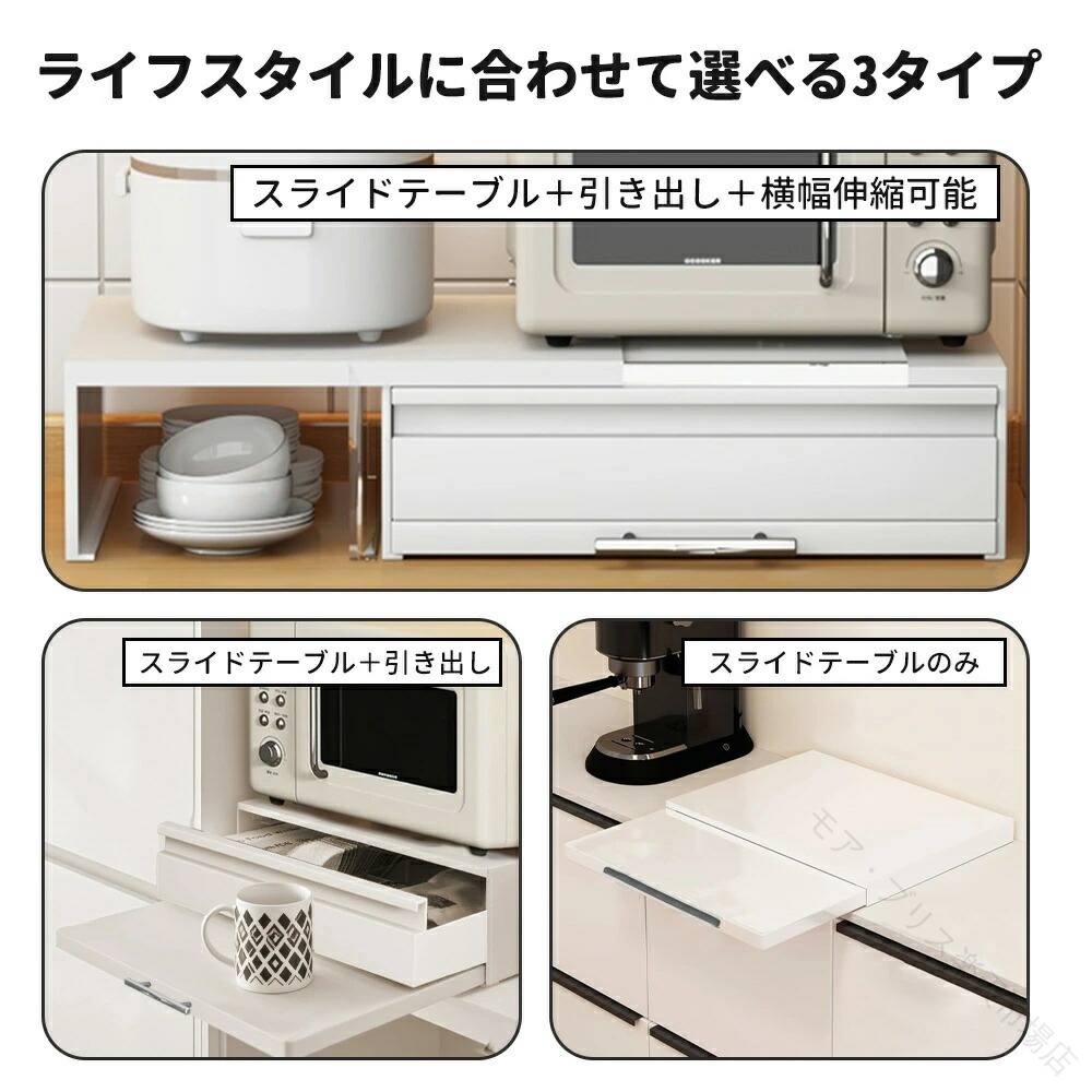キッチン家電下引き出し スライドテーブ キッチン整理用品 整理ボックス 新作 スライドテーブル+引き出し スライドテーブル+引き出し+伸縮 ホワイト ブラック