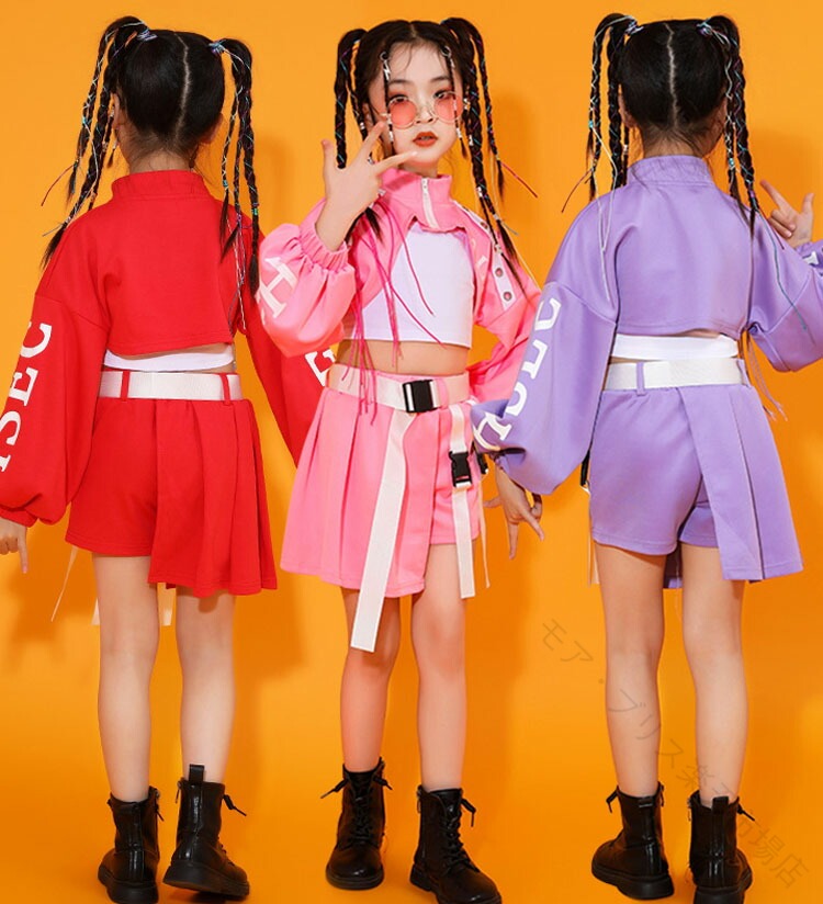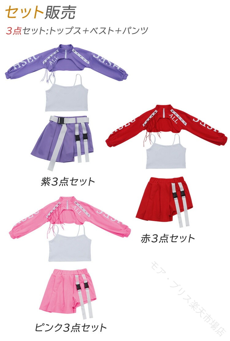 k - pop 衣装 キッズ ダンス 体操 ダンス 社交ダンス ウェア 人気 紫3点セット 赤3点セット ピンク3点セット 110 120 130 140 150 160 170