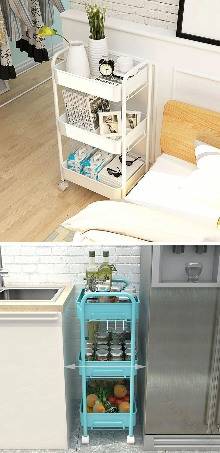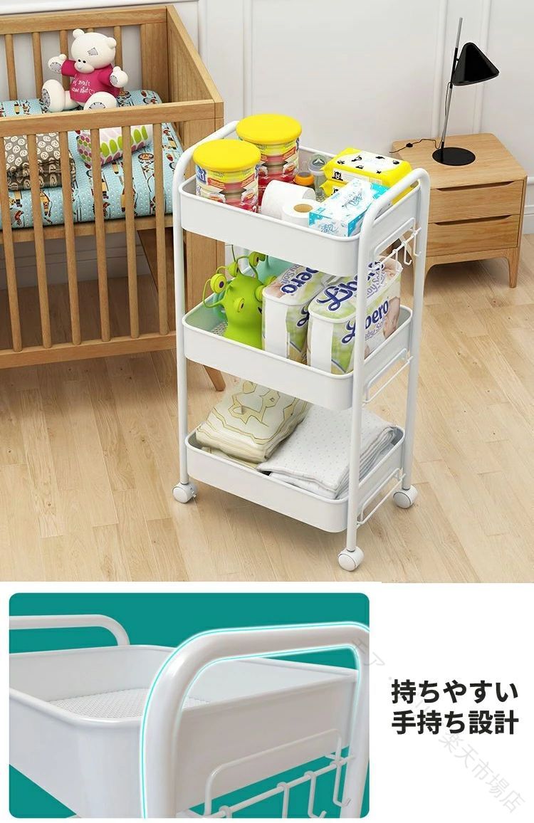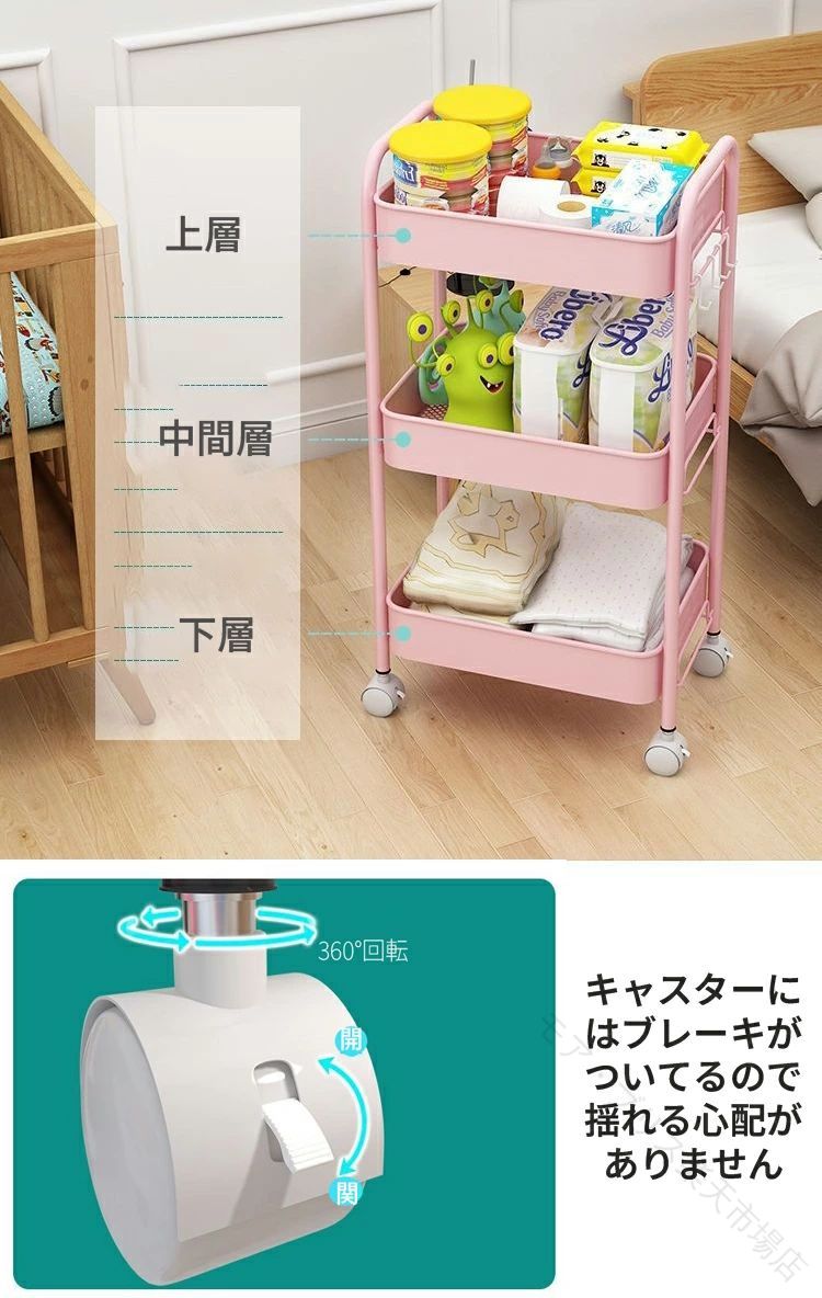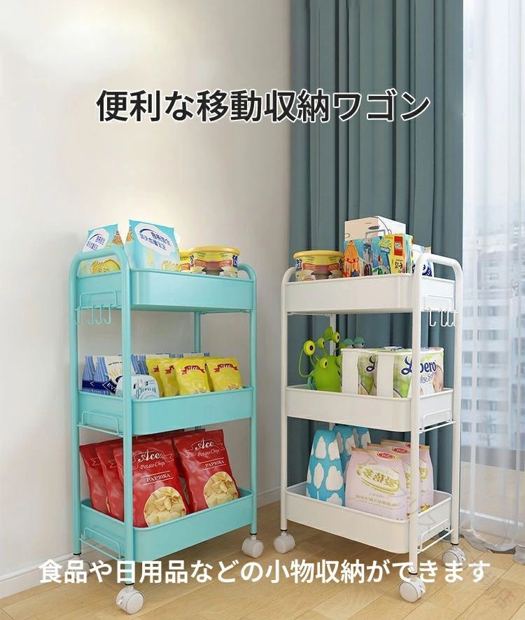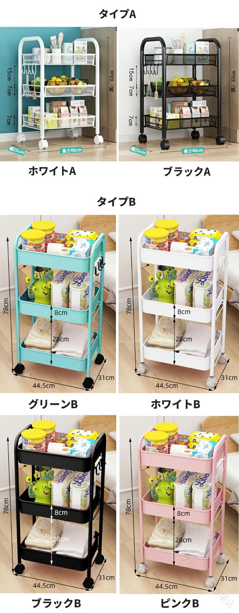 キッチンワゴン キャスター付き 3段 ホワイトA 48×25×63cm ブラックA 48×25×63cm グリーンーB 44.5×31×78cm ブラックB 44.5×31×78cm ホワイトB 44.5×31×78cm ピンクB 44.5×31×78cm