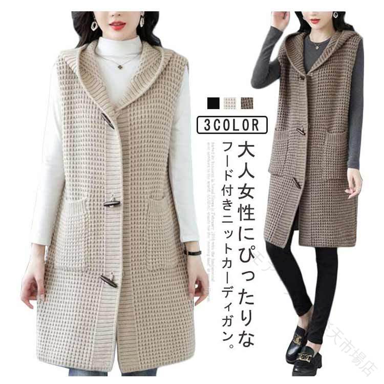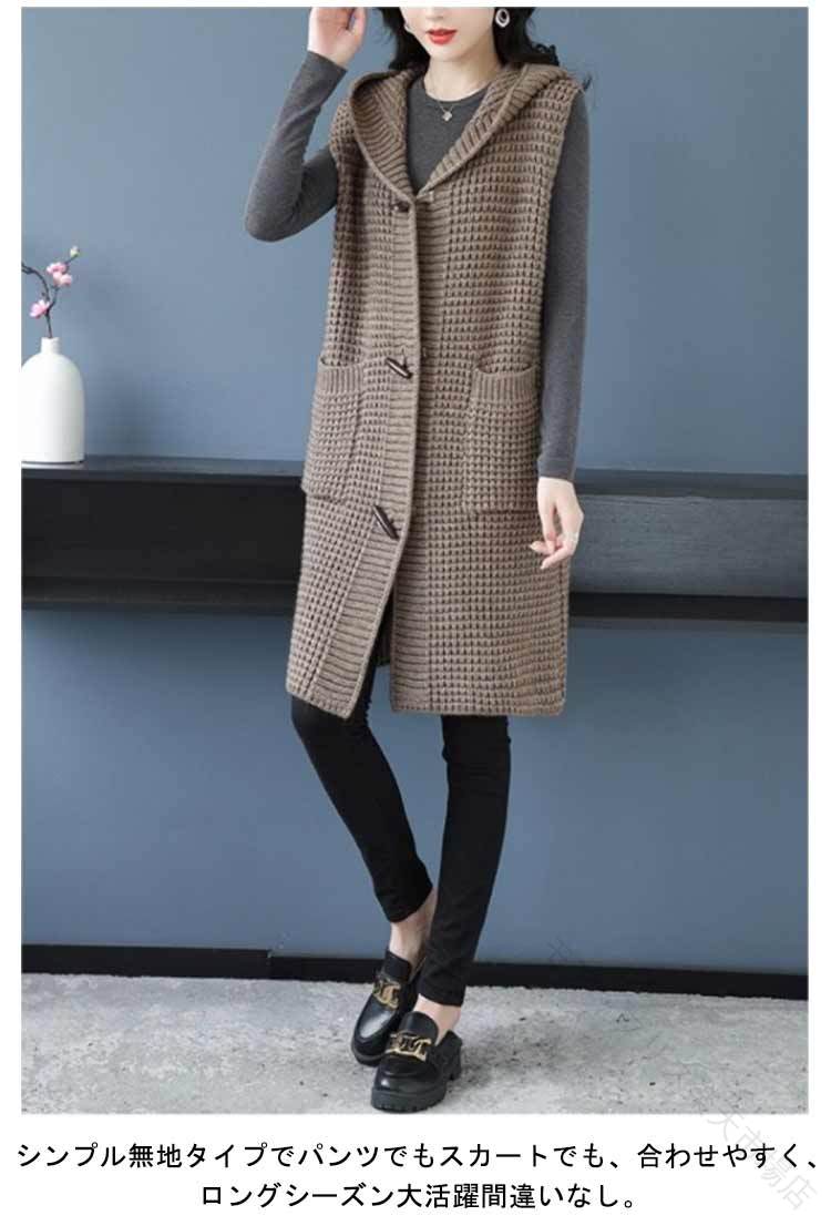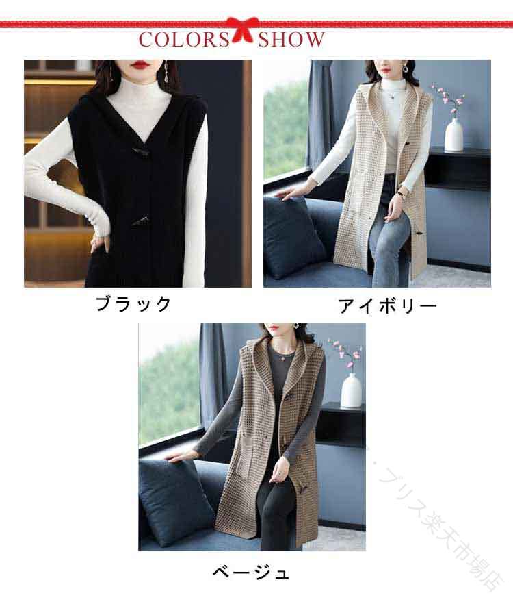 ベスト 体型カバー ロングベスト フー トップス ベスト 早い者勝ち ブラック アイボリー ベージュ S M L XL 2XL 3XL