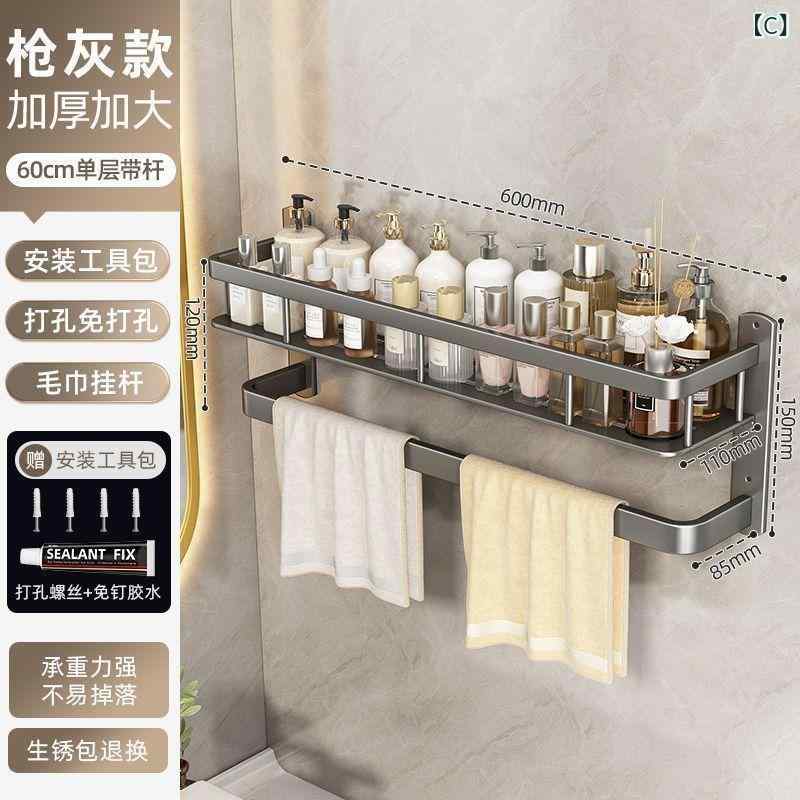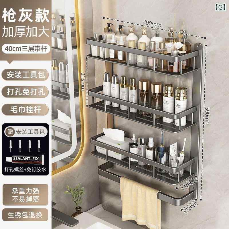 浴室収納ラック 穴あけ不要壁掛け棚 ト A:グレー B:グレー C:グレー D:グレー E:グレー F:グレー G:グレー H:グレー I:グレー