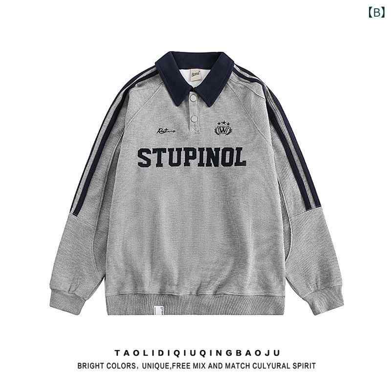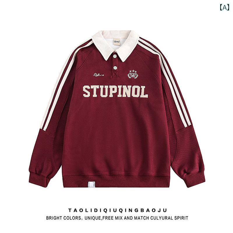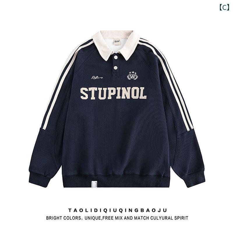スウェット 男女兼用 ポロ襟長袖 ラグ ホビー 通販 A:レッド B:グレー C:ネイビー M L XL 2XL