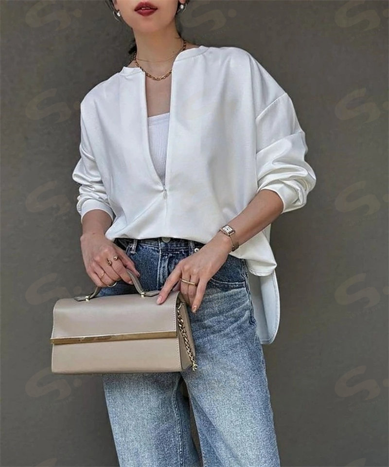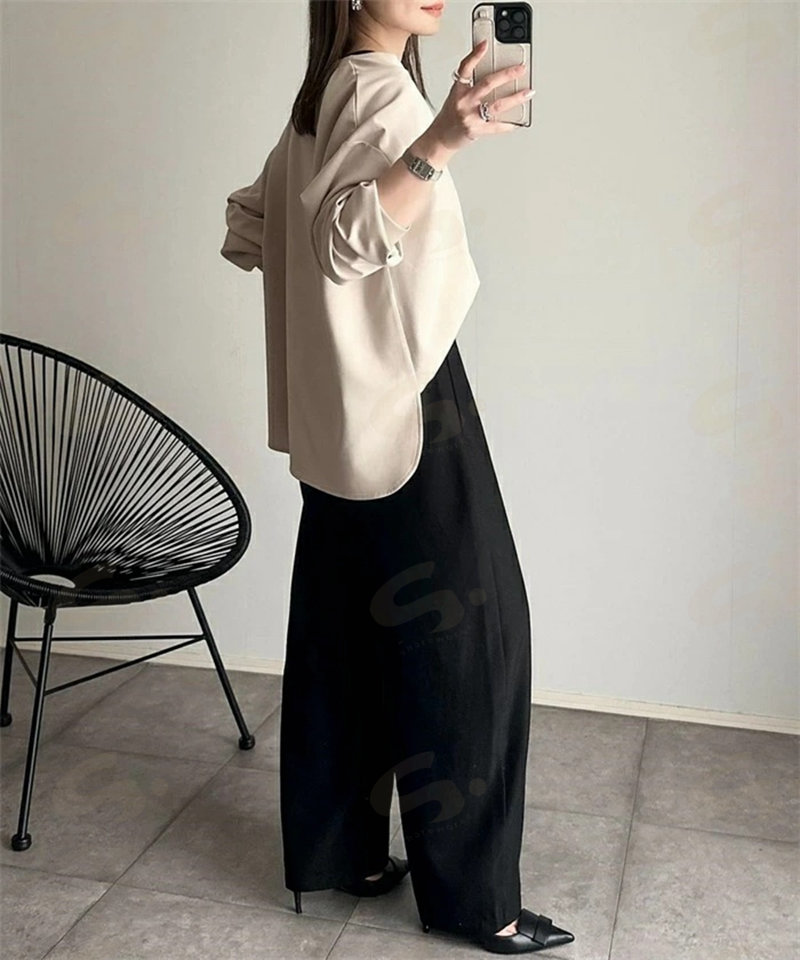シアースリーブ ドッキングシャツ ボウタイシャツブラウス