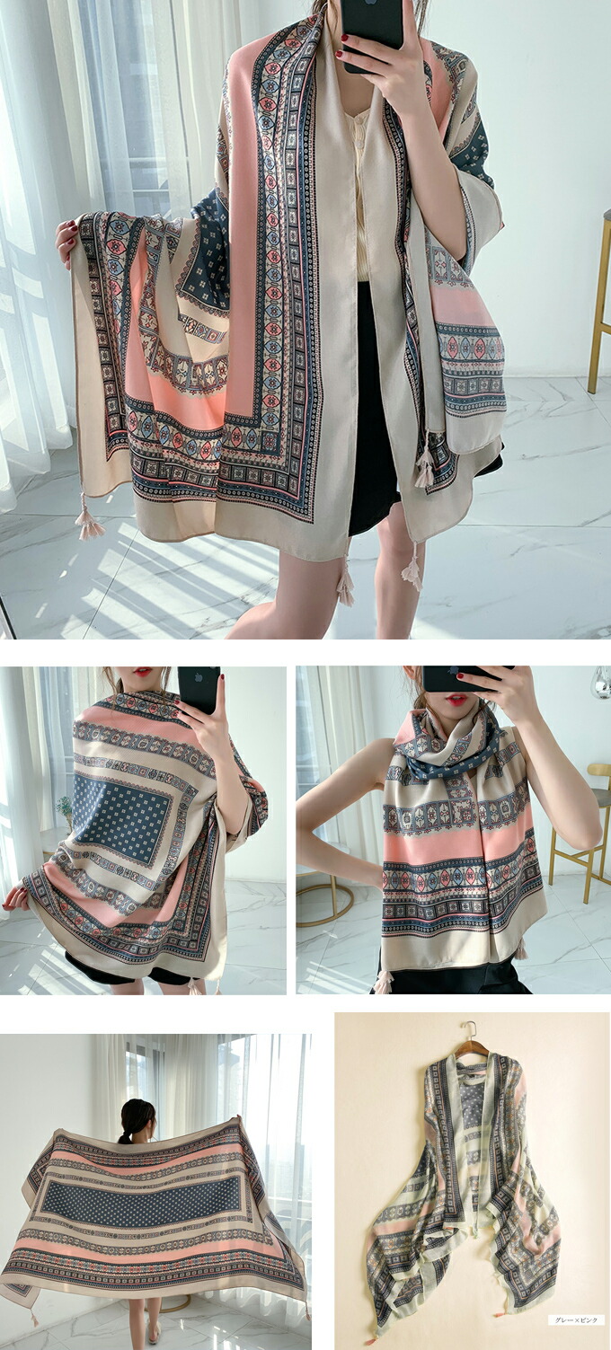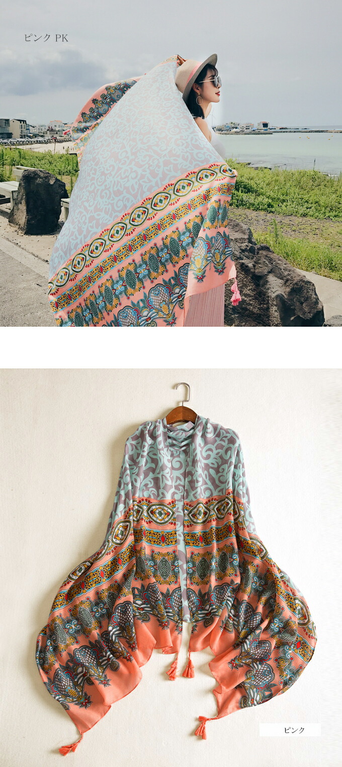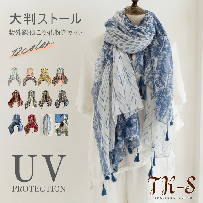 ストール タッセル付き 大判サイズ 大判ストール ショール 小顔効果 UVカット マフラー 巻き物 紫外線対策 日焼け防止 肩掛け 日よけ エレガント レディース 女性 春 夏 薄手 防紫外線 春物