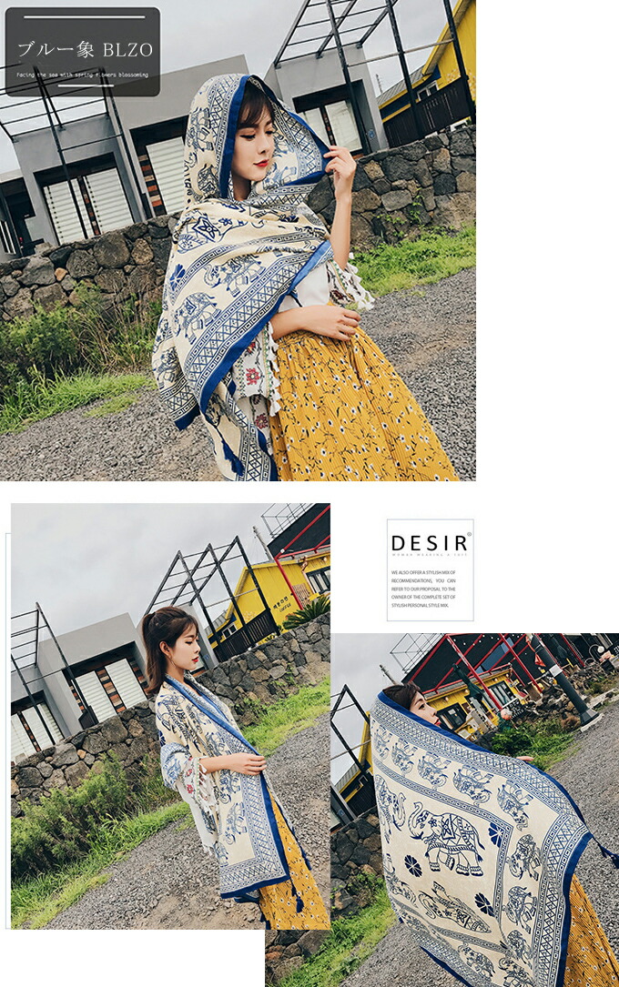 ストール タッセル付き 大判サイズ 大 マフラー スカーフ レディースマフラー ストール 人気 ネイビー レッド ピンク グレー×ピンク イェロー アンティークグリーン ブルー象 ブラック象 ブルー ネイビーピンク ブルー×ホワイト